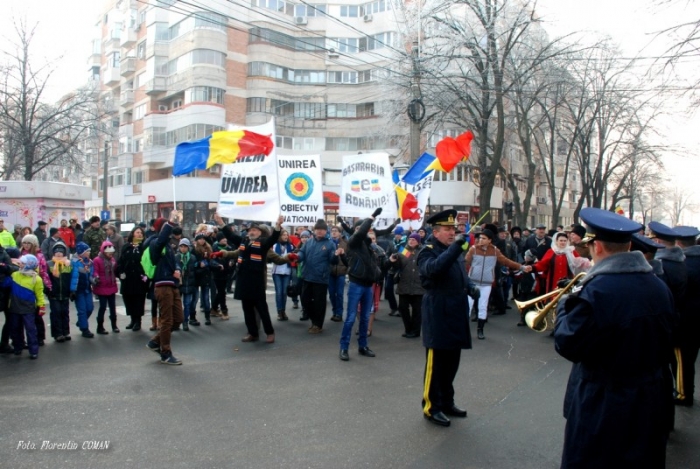 Competiţia electorală a lăsat loc, totuşi, pentru câteva minute, unei concordii generale, atunci când Muzica Militară a început să cânte Hora Unirii. Toţi cei prezenţi au intrat în hora care, din lipsă de spaţiu, s-a format pe trei rânduri. A fost, parcă, mai multă bucurie, decât în alţi ani, pe chipurile celor prinşi în horă, mai ales că de data aceasta fundalul sonor nu a fost doar instrumental ci s-a cântat şi textul Horei Unirii, de către un membru al fanfarei, iar versurile chiar au însufleţit atmosfera. În plus, câţiva activişti care militează pentru unirea Basarabiei cu ţara mamă au dat un plus de culoare, cu pancardele lor, întregii manifestări.