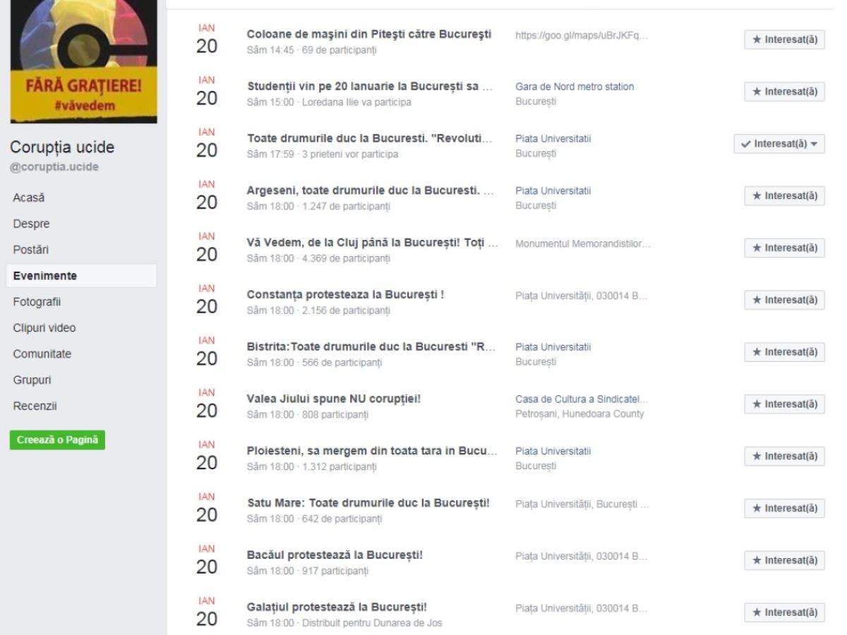 Alte mașini cu demonstranți vor veni dinspre Cluj, Pitești, Bistrița, Bacău și Satu Mare, potrivit unor alte evenimente create pe Facebook.
