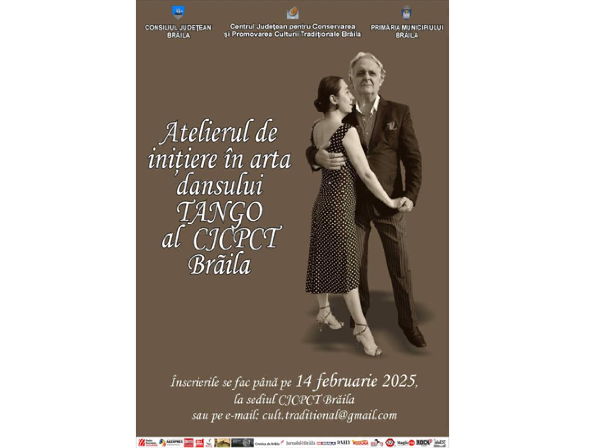 5. Atelierul de iniţiere în arta dansului - Tango se adresează persoanelor care îşi doresc să înveţe arta dansului, în special tangoul. Acesta este un dans cu multă personalitate, care transmite o trăire interioară intensă şi seduce publicul încă de la primele mişcări. Din septembrie 2009, tangoul argentinian figurează pe lista patrimoniului cultural imaterial al umanității UNESCO. Atelierul de iniţiere în tango îşi propune să facă cunoscută această bogăţie spirituală a lumii şi să o valorifice, iar sesiunile de dans se desfăşoară la sediul Centrului de Creație Brăila, de către maeștrii Mirela Roșu și Giorgio Panico, reprezentanți ai Școlii de Tango Urquiza.