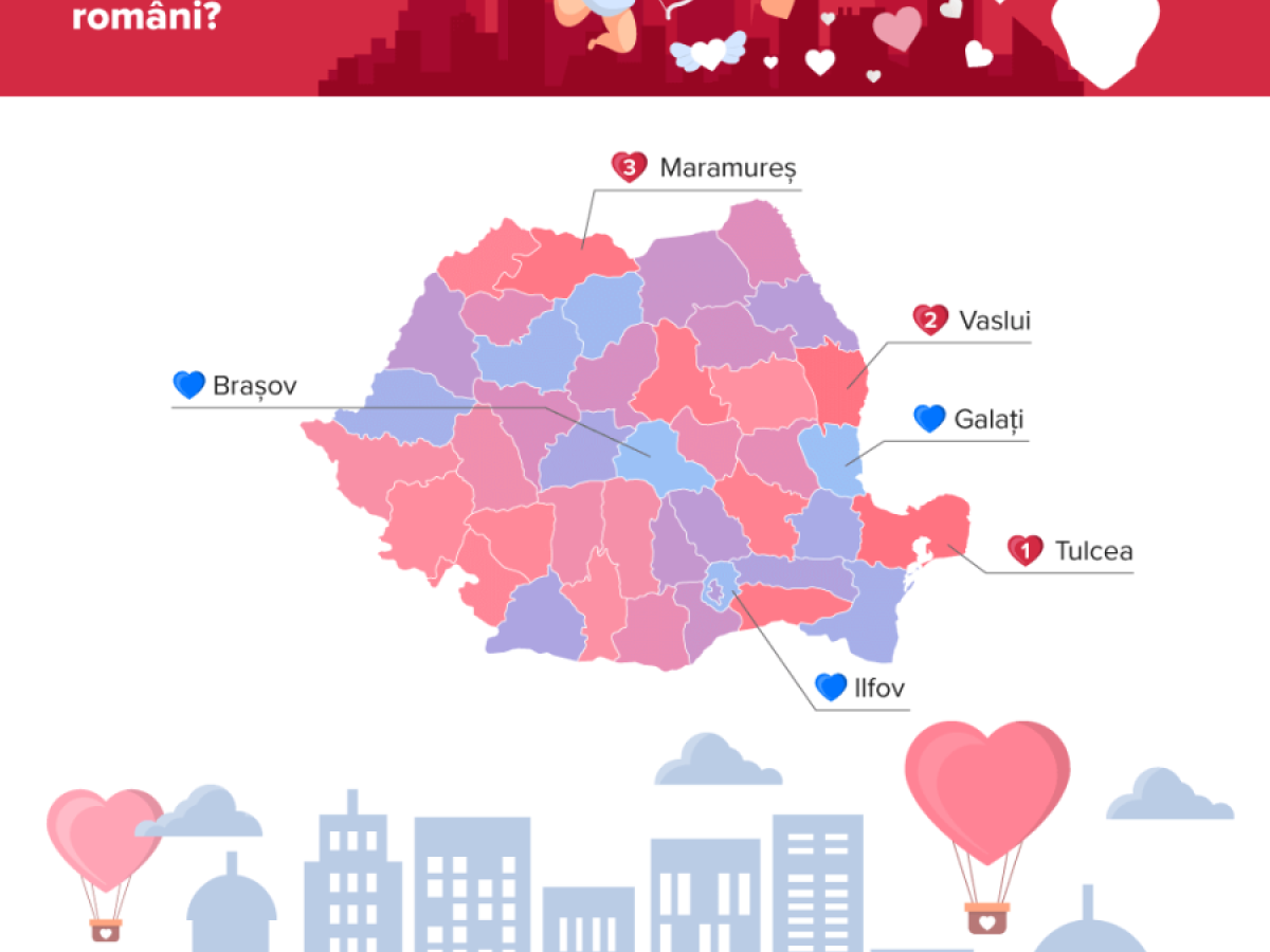 Clasamentul a fost realizat în contextul zilei de Valentine’s Day, iar analiştii au decis să verifice statisticile termenilor „romantici” de pe internet şi să creeze clasamentul celor mai romantice judeţe. În lista termenilor care au fost luaţi în considerare se află cuvinte precum: „Valentine’s Day”, „arătarea dragostei”, „cină romantică”, „flori” sau alte sintagme care pot fi asociate cu Ziua Îndrăgostiţilor. “Frecvenţa folosirii acestor cuvinte în căutări creşte odată cu apropierea Zilei Îndrăgostiţilor. Bineînţeles, în unele locuri, interesul de a-şi arăta afecţiunea persoanei iubite creşte mai tare, iar în alte locuri – evident mai puţin”, se arată într-un comunicat de presă Picodi.com, remis redacţiei.
