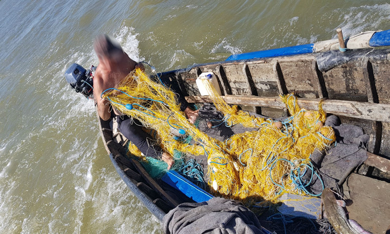 Acesta desfăşura activităţi de pescuit comercial, pe fluviul Dunărea, în zona km 176, folosind două plase de pescuit din aţă şi două tip nailon în patru fire.