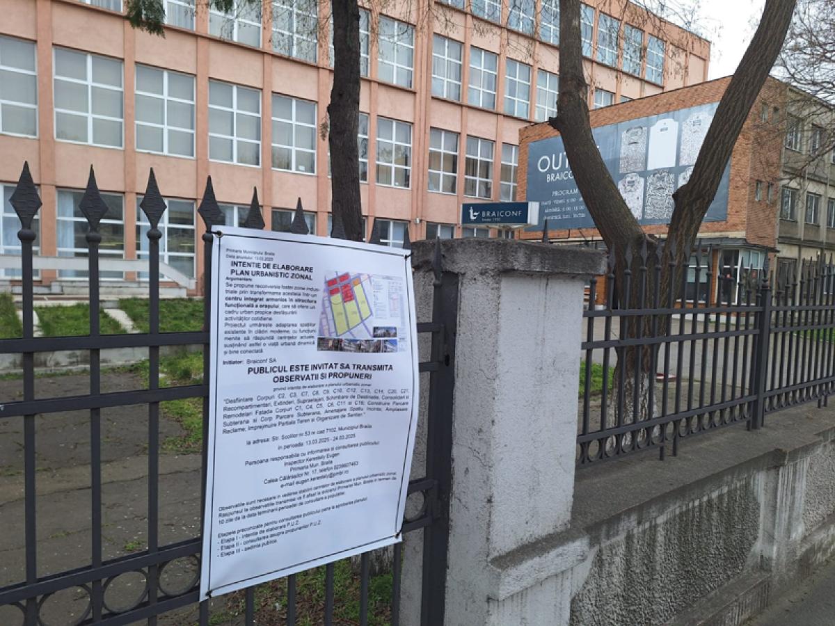 Brăila se pregătește pentru dezvoltarea unui centru comercial ultra-modern/hub multifuncțional în zona Școlilor. Este vorba despre ”Braiconf Plaza”, un proiect ambițios, creionat de conducerea fabricii de confecții brăilene, pentru care municipalitatea a anunțat deja intenția de elaborare a unui Plan Urbanistic Zonal. Mai precis, în perioada 13-24 martie, cetățenii au putut veni cu observații și sugestii privind acest plan de reconversie a fostei zone industriale de pe Strada Școlilor 53 și transformarea acesteia într-un centru comercial ”integrat armonios în structura funcțională a orașului”. Cert este că un prim anunț privind elaborarea planului a fost postat inițial la nivelul fabricii abia la data de 18 martie, iar în zilele ce au urmat au mai apărut și altele. De asemenea, deși redactorii ”Obiectiv – Vocea Brăilei” au încercat să obțină mai multe detalii privind acest proiect la scurt timp după apariția anunțului legat de PUZ, un răspuns din partea reprezentanților fabricii a venit abia, luni, 24 martie, ultima zi în care cetățenii mai puteau face obiecțiuni sau comentarii legate de proiect.