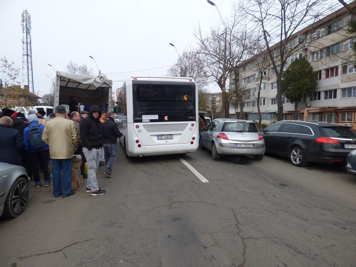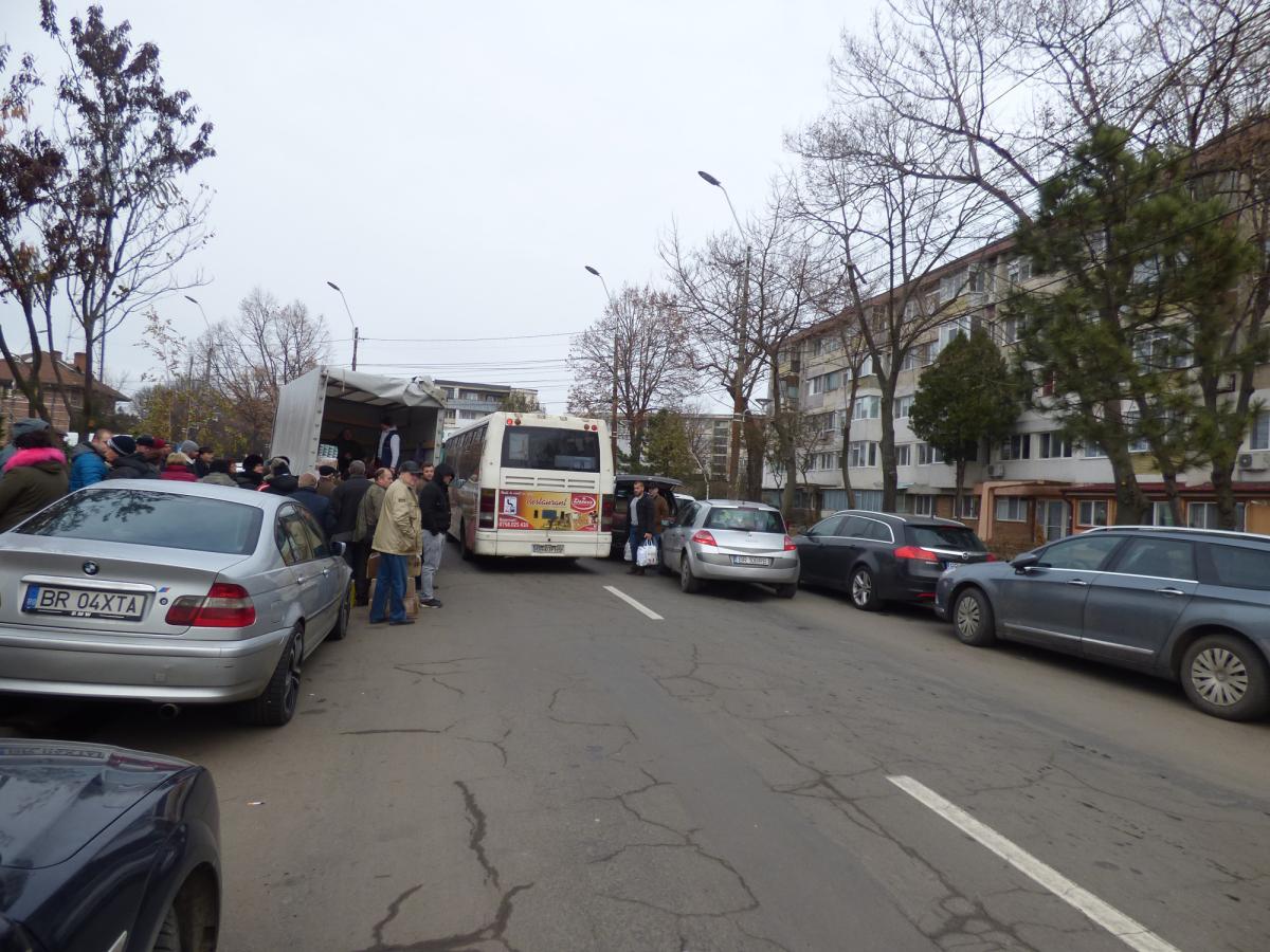 Însă fenomenul acesta perpetuu, al pachetelor, generează şi probleme, mai ales lângă fântâna arteziană din faţa gării CFR, unde, în fiecare miercuri la prânz, se adună circa 50 sau aproape 100 de persoane pentru a primi ori expedia amintitele colete. De unde începe, totuşi, harababura? În primul rând din cauza locaţiei neinspirate pentru mijlocul de transport care, pe lângă faptul că este de dimensiuni considerabile, aproape de fiecare dată are ataşată şi o remorcă. Iar cum pe carosabilul dinspre blocul 10 sunt maşini parcate/staţionate pe două rânduri, de către riverani dar şi de cei veniţi la pachete, odată sosită maşina de transport, aceasta nu mai are unde gara, deci inevitabil se blochează traficul auto. Cel mai dificil este pentru şoferii de autobuze, nevoiţi să se strecoare la centimetru printre maşini dar şi printre oamenii care se bulucesc să fie cât mai faţă. Fiincă, nu-i aşa, românul este antrenat să stea la cozi, rupându-şi hainele ori călcându-se în picioare. Se ajunge, astfel, de la claxonatul maşinilor, la ţipete, fluierături, vorbe “de duh” şi situaţii limită: nimeni nu mai iese, nimeni numai înaintează. Gândiţi-vă ce este atunci când vremea e neprielnică, punând la socoteală şi riscul unor accidente auto.
