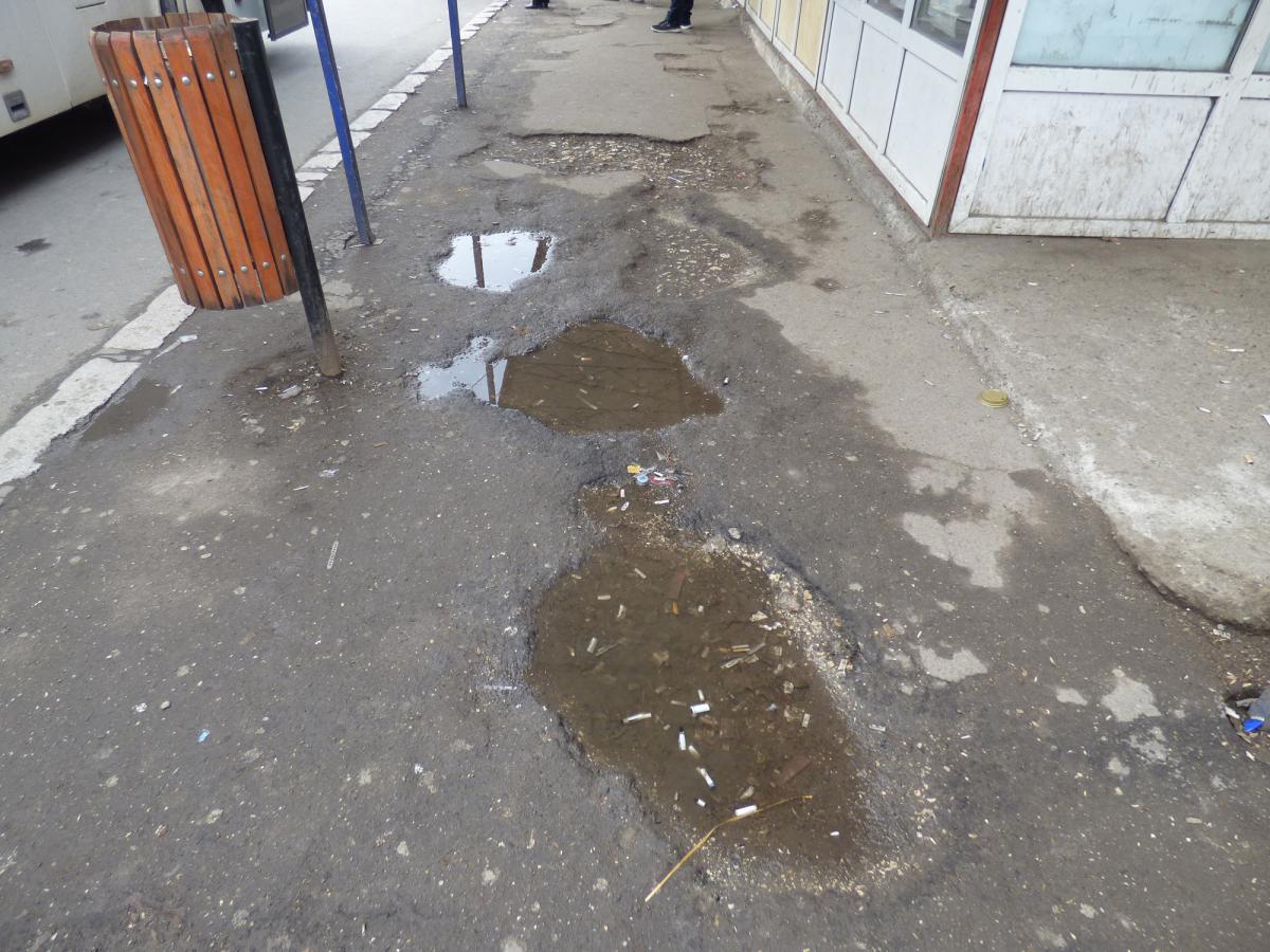 Odată cu sistematizarea pe verticală motivată de noul sens giratoriu, pietonii sunt în continuare derutaţi de zebra care nu-şi mai are rostul pe vechiul loc. Cea mai mare pacoste o constituie, însă, gropile din staţie şi de pe carosabil, chiar dacă acestea din urmă au fost parţial astupate cu piatră spartă. În ani de zile în care nu au mai „interesat” pe nimeni, gropile s-au adâncit până la 15-20 centimetri. Fenomenul a fost şi este în continuare periculos pentru traficul rutier, dar şi prin deteriorarea sistemelor de suspensie/direcţie ale autobuzelor şi autoturismelor. Deci: cheltuieli cu piesele de schimb, nervi şi înjurăturile de rigoare adresate, de şoferi, se ştie cui...