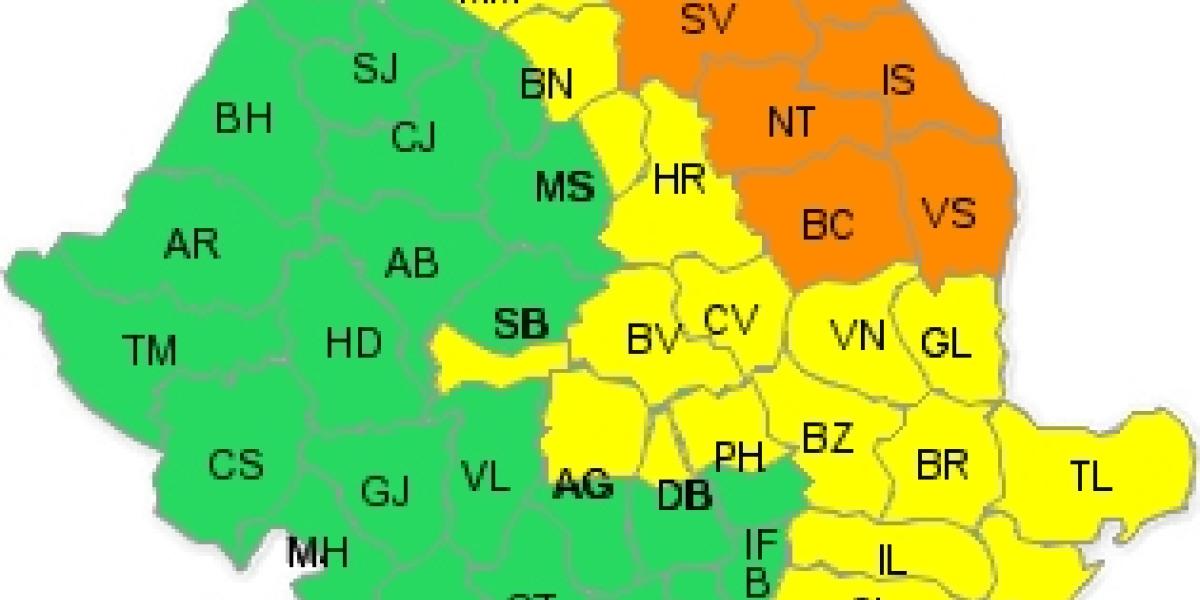 Administraţia Naţională de Meteorologie a emis o avertizare cod portocaliu de ploi torenţiale şi vijelii pentru şase judeţe din nord-estul ţării, valabilă până miercuri la ora 11.00.