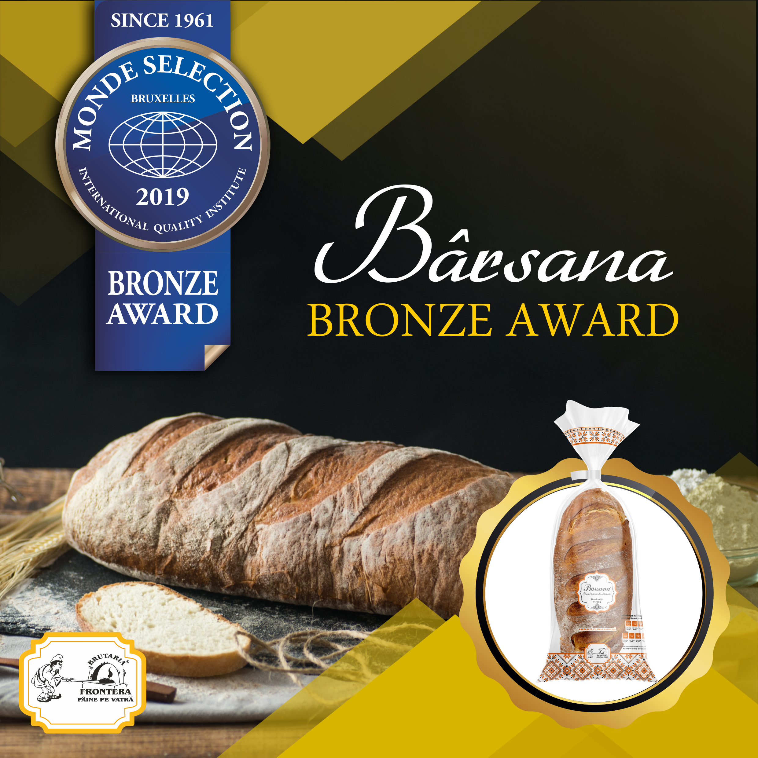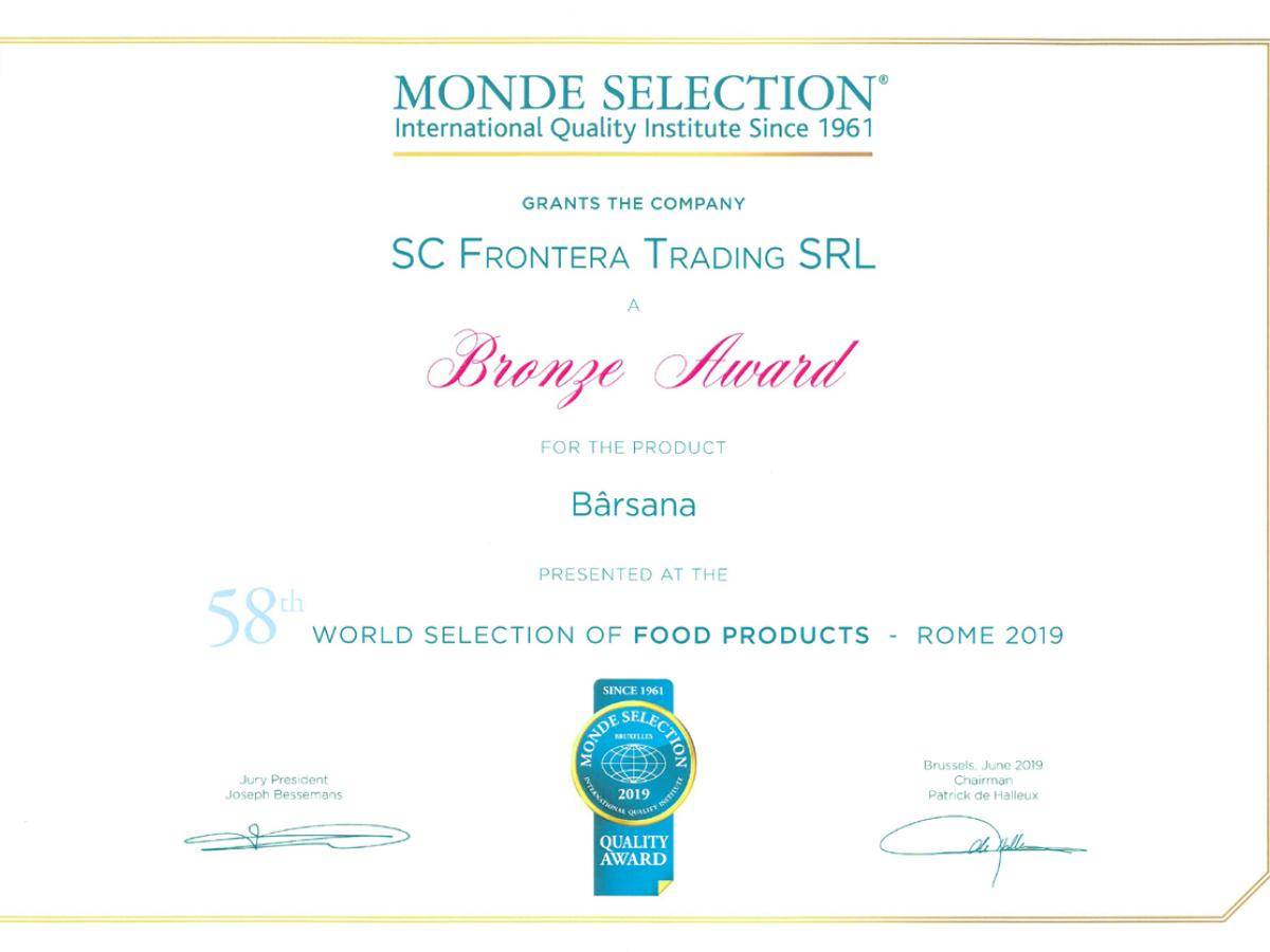 "Pâinea Bârsana" - produs după o rețetă tradițională marca Brutăria Frontera a câștigat în această vară un important premiu în Italia, decernat de un prestigios institut belgian în domeniul calității. Mai precis, firma brăileană a propus spre jurizare echipei de specialiști din cadrul “Monde Selection - International Quality Institute” din Belgia produsul amintit, iar la final, în cadru festiv, la Roma, în Italia, a primit distincția “Bronze Award 2019”. Realizată după o rețetă proprie brutăriei, fără amelioratori, coaptă pe vatră și afânată cu maia naturală, specialitatea "Pâine Bârsana" le-a atras atenția membrilor juriului, care au avut de acordat calificative la mai multe categorii, printre care: prezentare produs/ambalaj, gust, textură, aspect și, nu în ultimul rând, aromă. La acest eveniment au participat producători din zona “food” din întreaga lume, Brutăria Frontera fiind singurul participant român înscris la jurizarea celor de la Monde Selection - International Quality Institute la categoria panificație. "Produsul nostru a atras atenția juraților care i-au acordat distincția Bronze Award 2019 la secțiunea pâine, ceea ce pentru noi, echipa Frontera, a reprezentat o mare bucurie dar și o recunoaștere a eforturilor continue privind menținerea unui standard ridicat de calitate. Acest sortiment de pâine este realizat după o rețetă concepută aici, la brutărie, și este prezent pe piață din 2016. Este un produs cu care ne mândrim cu atât mai mult cu cât, încă de la lansarea lui pe piață, s-a dovedit a fi pe gustul brăilenilor, și nu numai, pentru că a fost bine primit de clienții noștri, inclusiv în celelalte județe în care suntem prezenți", ne-a declarat Alexandru Stancu, reprezentantul Brutăria Frontera Brăila, subliniind, de asemenea, că distincția acordată de către Monde Selection International Quality Institute reprezintă o reușită în lupta continuă pe care compania brăileană o duce cu scopul de a-i convinge pe consumatori să renunțe la produsele de proastă calitate și să aleagă produsele tradiționale și naturale fără amelioratori, realizate din materie primă de cea mai bună calitate.