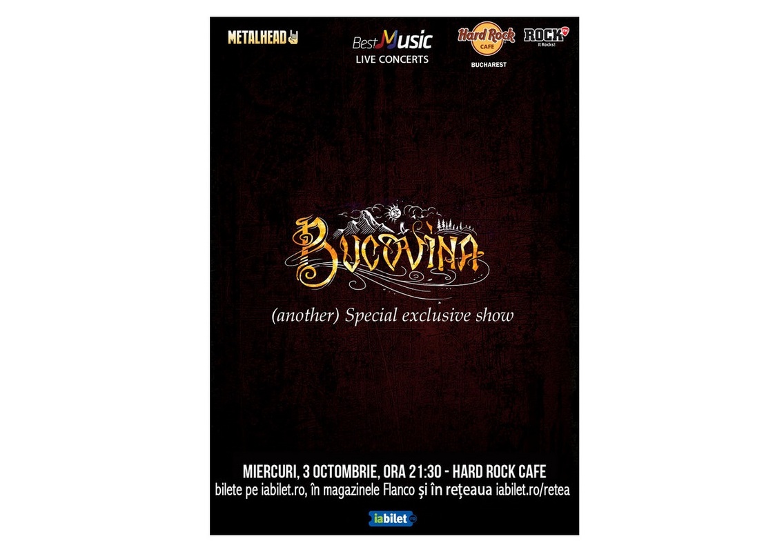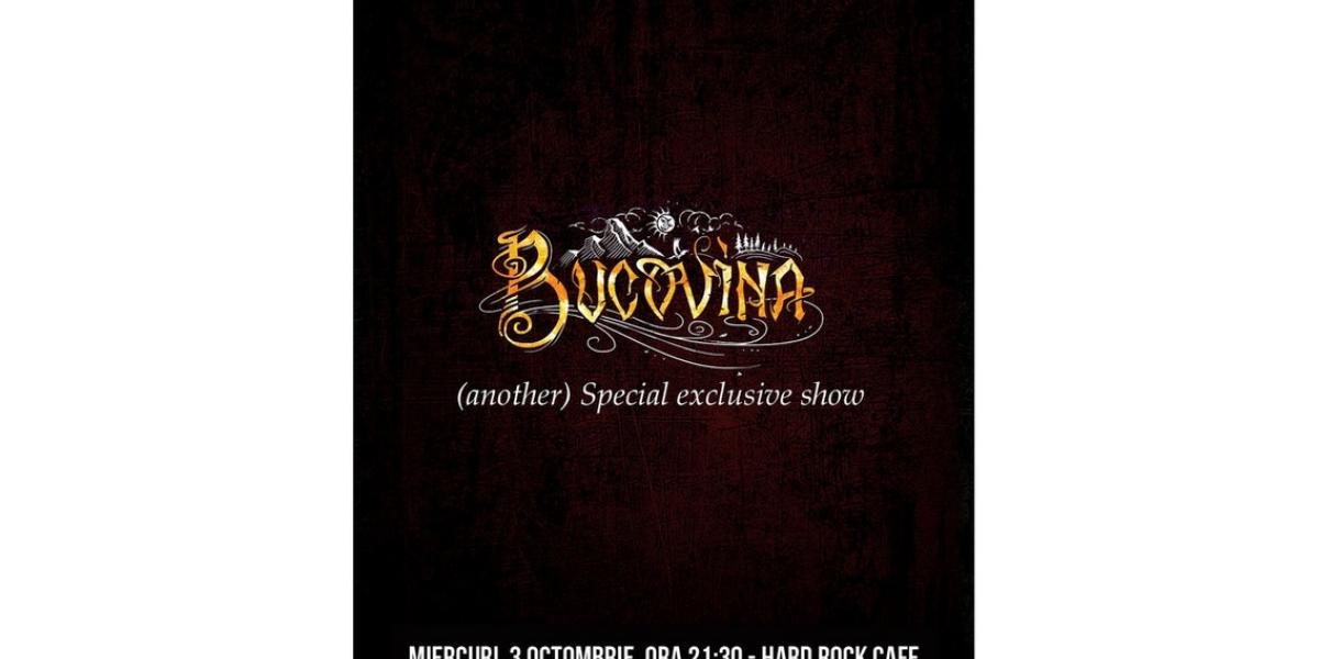 Trupa Bucovina va concerta, mâine, în București. Este vorba despre un show exclusiv, ce va avea loc miercuri, 3 octombrie, la ora 21:30, pe scena Hard Rock Cafe. Este a doua oară când grupul concertează în acest club, după un spectacol sold out în primăvară.