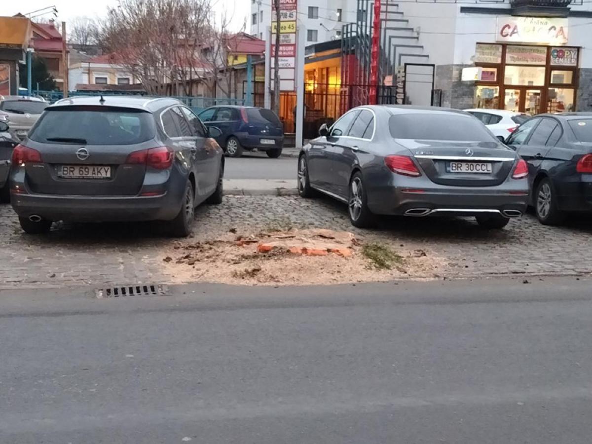 * nenumărate mașini au fost avariate în cele câteva luni în care acel rest de copac a fost pur și simplu abandonat acolo de Seroplant Brăila * problema s-a rezolvat parțial abia ieri