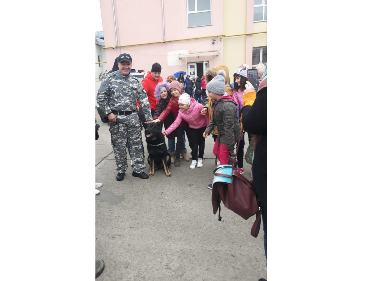 Întâlnire între elevi şi câinii poliţişti, printre care s-a aflat chiar patrupedul “Gipsy”, câinele de urmă care acţionează cu operativitate pentru prinderea criminalillor şi tâlharilor, ajutându-i pe oamenii legii în anchetele efectuate. Gipsy s-a înţeles bine cu cei mici, chiar s-a lăsat mângâiat, el fiind un animal blând, care acţionează numai la comandă. Alţi doi câini poliţişti de patrulare - intervenţie, Vera şi Vam, au prezentat exerciţii impresionante pentru elevi, la mai multe unităţi de învăţământ.