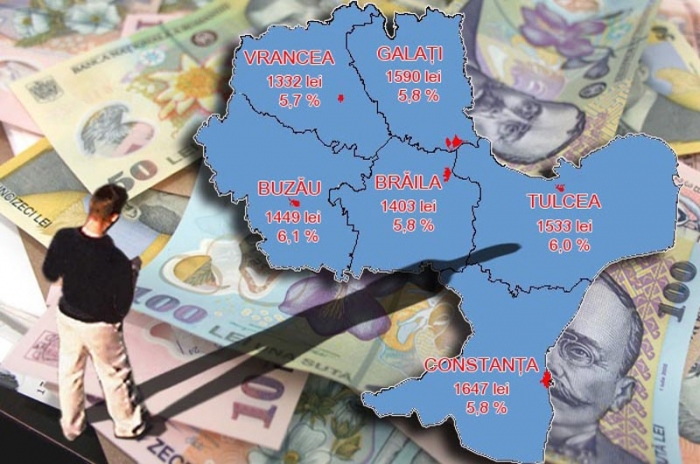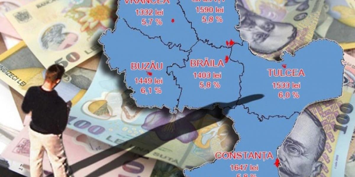 Revenind, tot cu o creştere de 5,8% este menţionat şi judeţul Constanţa (de la 1.557 lei în 2014, la 1.647 lei în acest an), dar şi Galaţiul (de la 1.557 lei în 2014, la 1.590 lei în acest an). Cele mai mari creşteri de salariu, exprimate în procente, sunt însă prognozate pentru judeţul Buzău, de 6,1% (de la 1.366 lei în 2014, la 1.449 lei în acest an), precum şi pentru Tulcea, de 6,0% (de la 1.446 lei în 2014, la 1.533 lei în acest an). În ce priveşte Vrancea, aici este prognozată cea mai mică majorare la capitolul venit salarial mediu net, de doar 5,7%, adică de la 1.260 lei în 2014, la 1.332 lei în acest an.