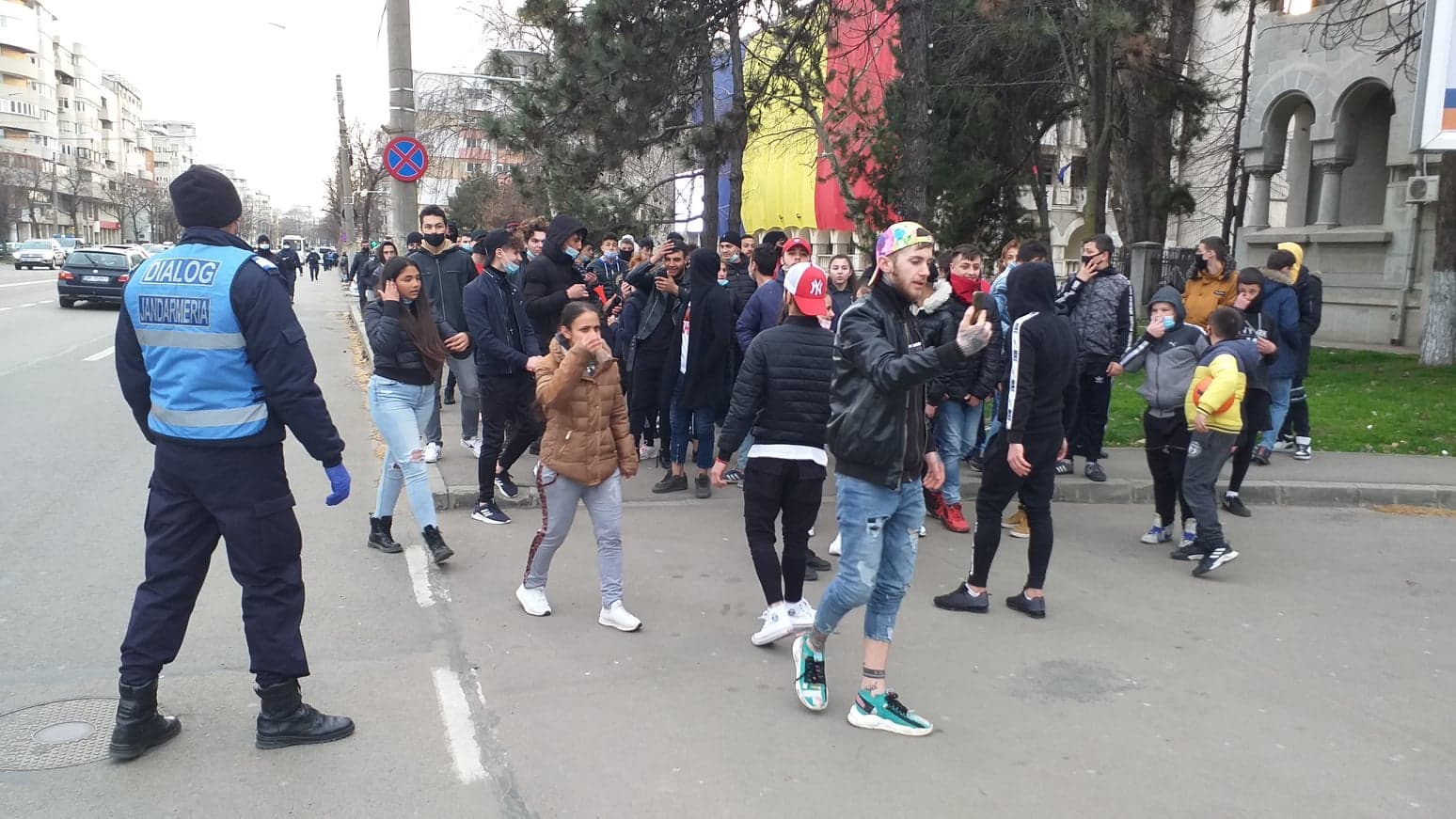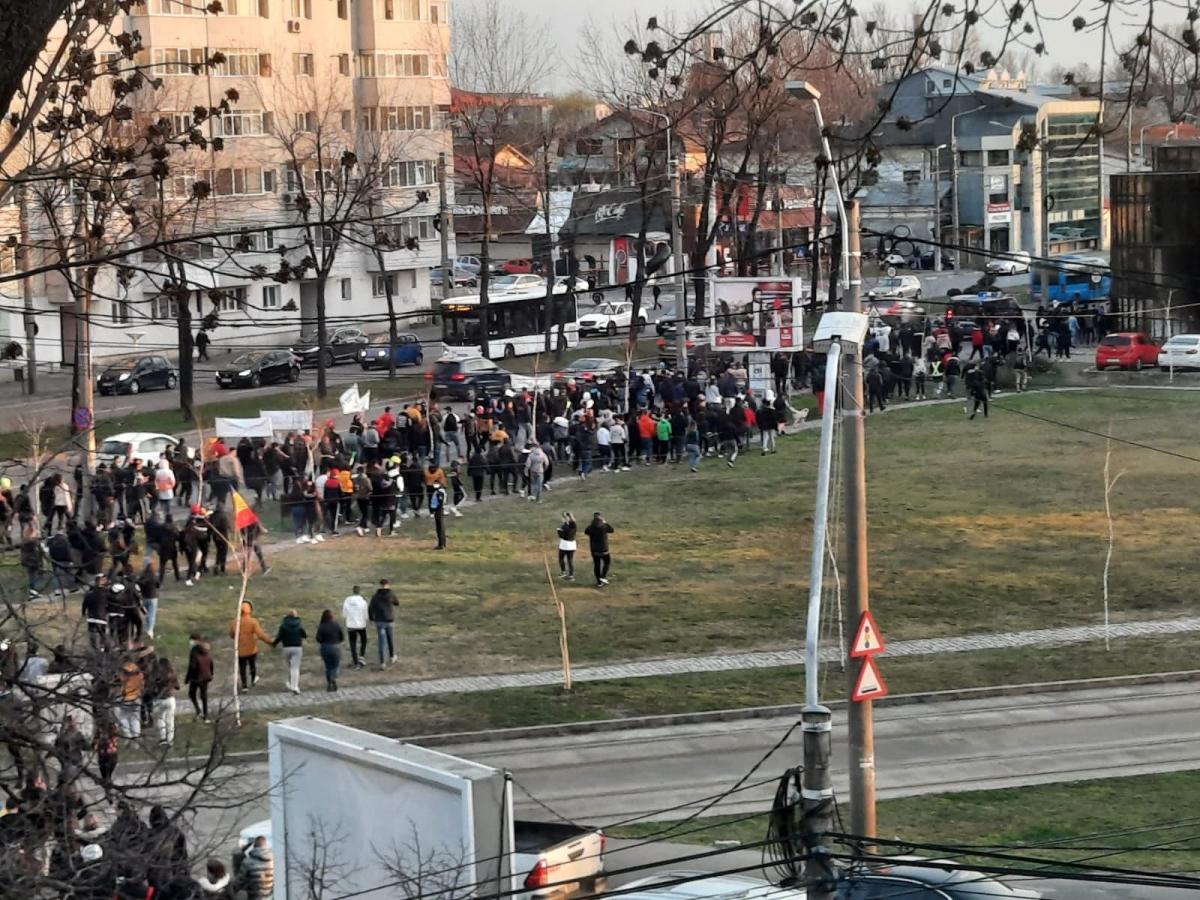 ȘTIRE INIȚIALĂSute de brăileni, vizibil mai mulți decât în serile precedente, protestează din nou, pentru a patra zi consecutiv, împotriva restricțiilor impuse de autorități, interzicerea circulației după ora 20.00 fiind principala lor nemulțumire. Grupul de protestatari este format în special din tineri și adolescenți, mulți dintre ei fără mască de protecție. Aceștia s-au adunat în Piața Independenței, apoi au pornit în marș pe Calea Călărașilor, trecând de Barieră și continuându-și drumul pe Șos. Buzăului, spre Spitalul Județean. În această seară unii protestari au cu ei pancarte, iar alții animă atmosfera cu vuvuzele sau alte instrumente care fac zgomot. Tinerii scandează ”Libertate!”, ”Demisia” și alte lozinci împotriva guvernanților. Alaiul e îsoțit de echipaje de jandarmi.