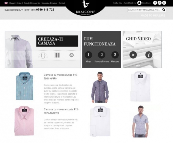 Aplicaţia pentru acest serviciu este disponibilă în magazinul online al companiei, iar clientul poate alege tiparul (croială clasică sau cambrată), ţesătura, culorile, nasturii, modelul gulerului, aplicarea buzunarului, forma şi culorile garniturilor, modelul manşetelor. Mai mult, în limita a şase caractere, clienţii îşi pot alege monograma ce va fi inscripţionată pe cămaşă.