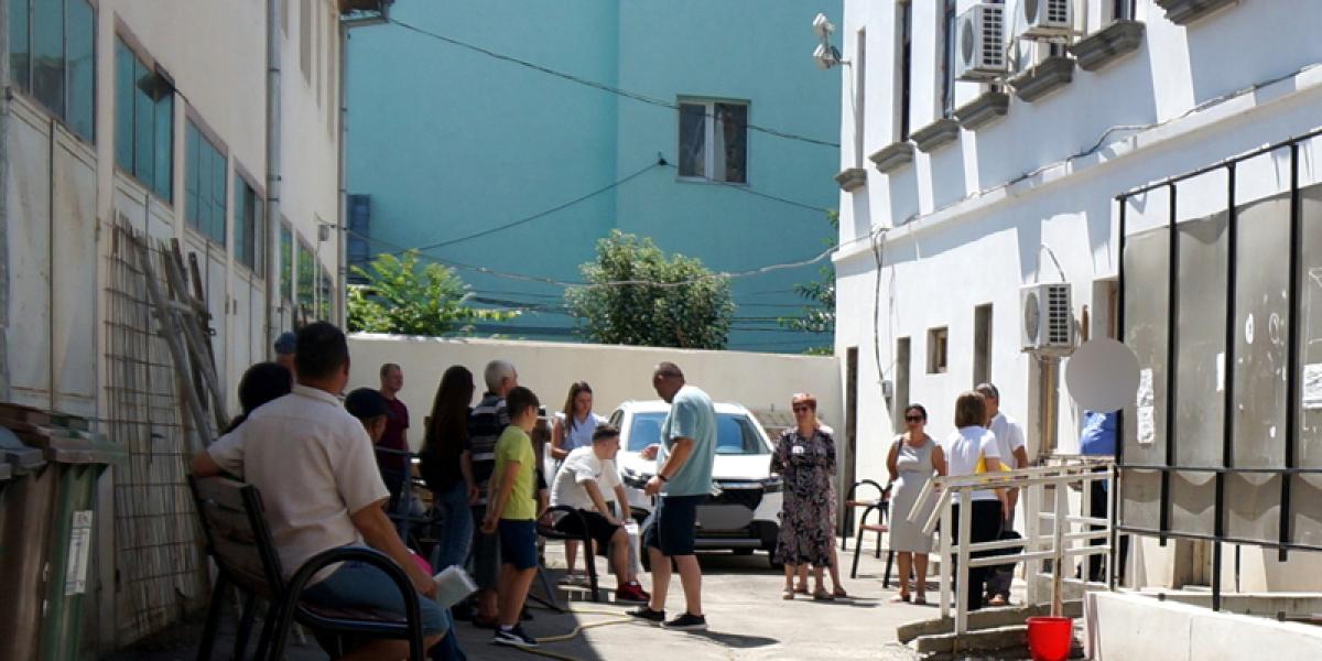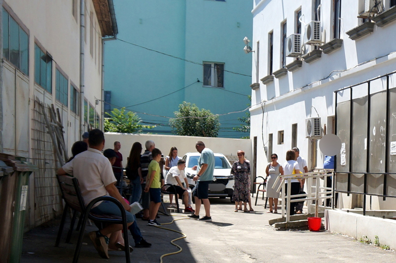 Pe parcursul unei zile, oamenii care așteaptă în curtea interioară sunt practic împărțiți în mai multe tabere. De bunul mers al lucrurilor se ocupă agentul Poliției Locale, cu o listă în mână, și care răspunde de cei fără programare online, alături de cei ”cu alte solicitări”.