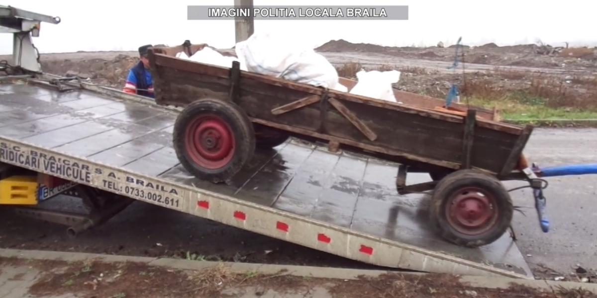 În luna august a acestui an, polițiștii locali brăileni, împreună cu comisarii Gărzii de Mediu Brăila, au mai confiscat o căruță aparținând unui individ în vârstă de 54 de ani, care a fost depistat în timp ce arunca moloz pe domeniul public, în zona străzii Cezar Petrescu. Bărbatul a fost amendat de către comisarii Gărzii de Mediu iar atelajul hipo a fost transportat într-o zonă special amenajată de pe platforma fostului combinat, situat pe raza comunei Chiscani.