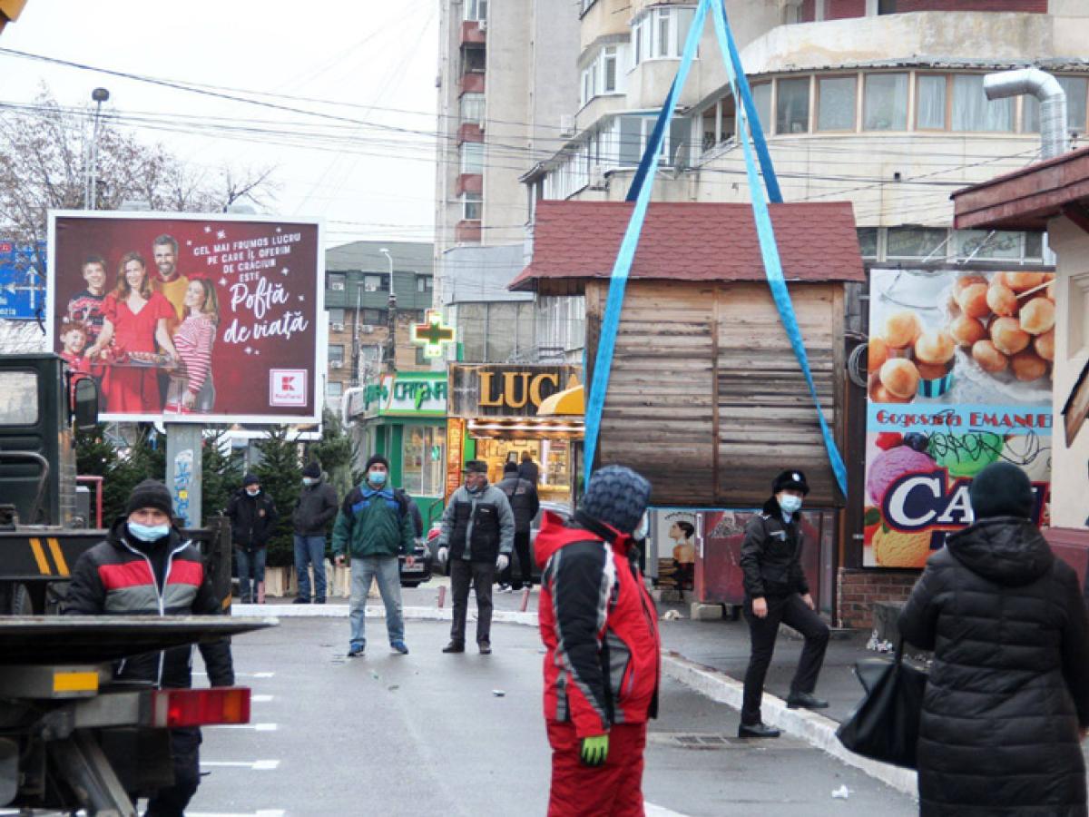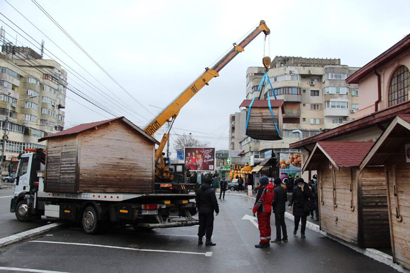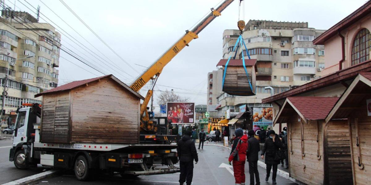 Primăria a început, de ieri, să ridice căsuțele de lemn amplasate în parcarea de la Piața Halelor, după ce au încetat restricțiile legate de funcționarea piețelor interioare, iar comercianții au din nou voie să își valorifice mărfurile în interiorul halei. După cum se știe, respectivele căsuțe au fost amplasate în parcare în urmă cu câteva săptămâni, pentru a le oferi comercianților posibilitatea să vândă în aer liber, cât timp piețele interioare au fost închise pe fondul restricțiilor impuse de pandemia de coronavirus. În total, au fost montate pe trotuarul din dreptul Halei 22 de căsuțe din lemn, însă nu toate au fost ocupate pe perioada restricțiilor. Cert este că acum, când nu mai este nevoie de ele, se eliberează spațiul, pentru ca parcarea să poată fi redeschisă pentru șoferii care vin să facă cumpărături în piață. Primarul Marian Dragomir ne-a declarat că parcarea ar putea fi deschisă chiar de astăzi, marți, 15 decembrie.