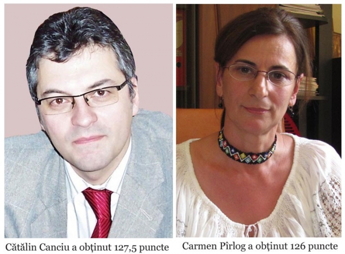 Dacă ar fi să ne luăm după primele rezultate, afişate ieri, se pare că prof. Cătălin Canciu a fost mai convingător şi a rezolvat mai multe întrebări la testul grilă decât prof. Carmen Pîrlog. Trebuie precizat, totuşi, că diferenţa dintre notele celor doi este extrem de mică. Astfel, din totalul de 150 de puncte, Canciu a obţinut 127,5 puncte, iar Pârlog 126 de puncte.