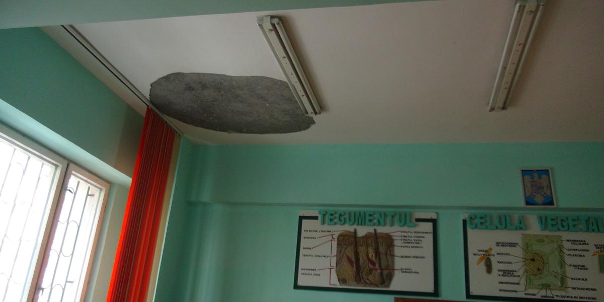 STIRE INITIALA: A căzut tavanul peste catedră chiar în timpul orelor