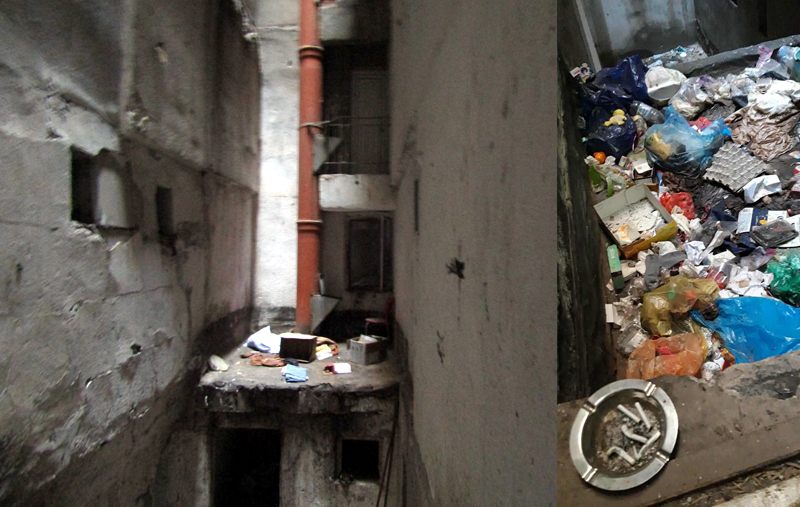 Vrem să credem că aşa vor sta lucrurile, însă, nemulţumită, dna Nichifor, a ţinut să adauge: “Deoarece este imposibil să mai suport mirosul, mizeria şi focarul de infecţie de lângă apartament, am vrut ca cineva să ne dezinfecteze/deratizeze zona, numai pe banii mei, dar meseriaşul nu a vrut să-mi dea vreun act la mână”. Aspect la care adăugăm şi noi unul, foarte periculos: planşeele de la fiecare etaj nu au bare de protecţie sau plasă pentru evitarea căderii în gol! Şi nu este în regulă ca pubelele odată golite să stea afară sub ferestrele blocului.