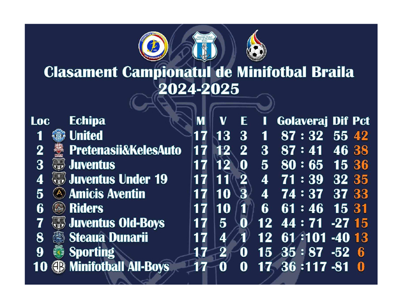 Surpriza etapei a 17-a a Campionatului de Minifotbal Brăila a reprezentat-o victoria cu 4-3 obținută de Riders, locul al 6-lea, în partida cu Pretenașii&Keleș-Auto.