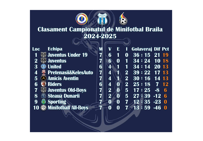 Etapa a 7-a a turului Campionatului de Minifotbal Brăila a fost una cu rezultate normale.