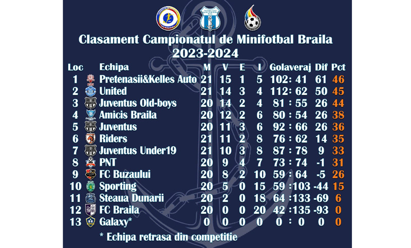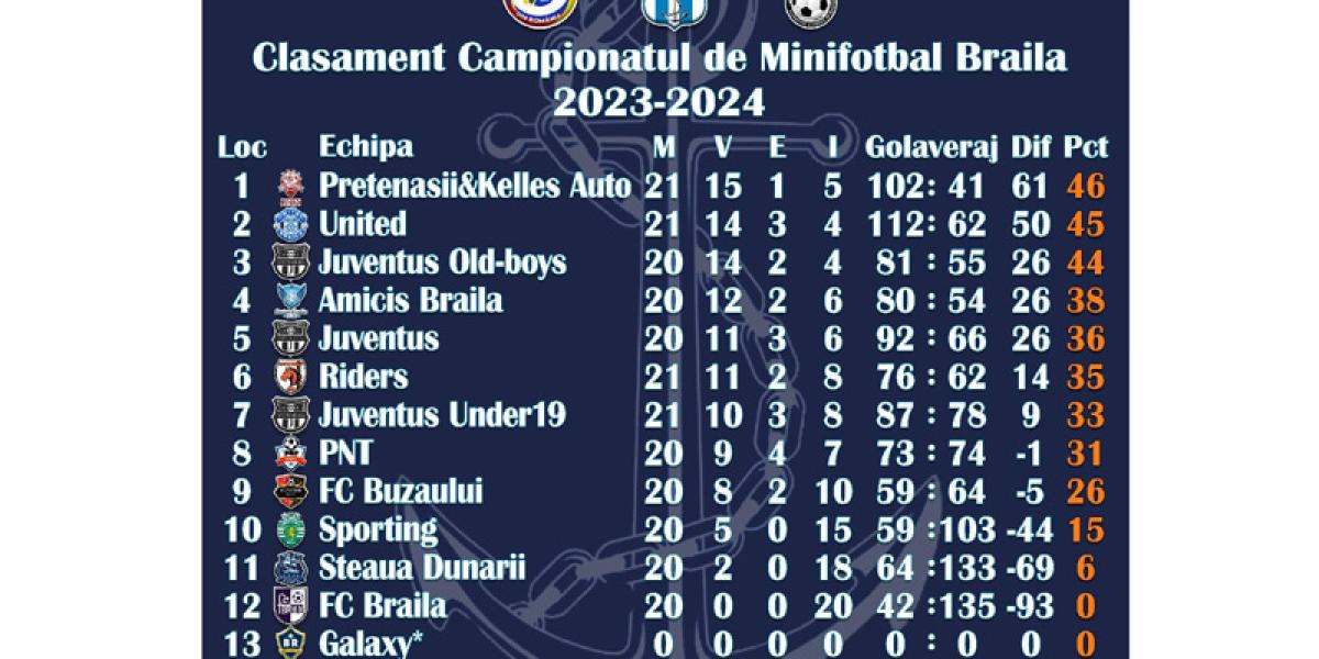 Etapa a 24-a a Campionatului de Minifotbal Brăila a fost una în care favoritele s-au impus la scor. Singura partidă echilibrată a fost cea dintre Juventus - Juventus U19 încheiată cu victoria la limită a formației considerate în deplasare.