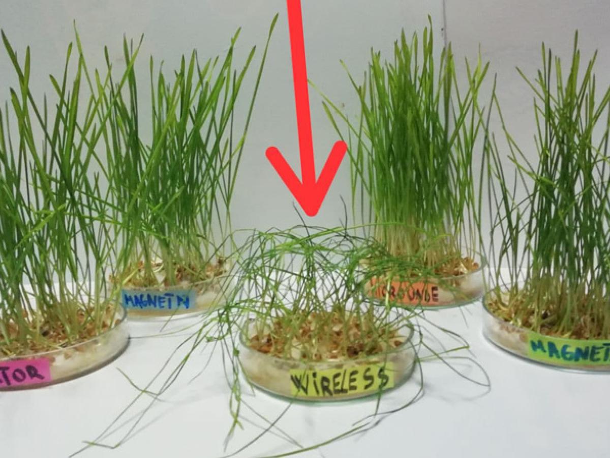 “În cazul primului experiment am pus grâu la încolţit în cinci medii diferite: unul care a stat ferit de radiaţii (martorul), unul care a stat permanent lângă routerul wireless, unul lângă cuptorul de microunde şi a fost udat cu apă din cuptorul cu microunde, unul lângă un magnet cu polul nord şi unul lângă un magnet cu polul sud. Le-am lăsat să stea 21 de zile, toate recipientele fiind îngrijite la fel. Dar după 21 de zile martorul şi încă trei dintre vase arătau normal, pe când cel de lângă routerul wireless avea un aspect degenerat. Era practic uscat. Al doilea experiment a fost cu cilindre gradate, în laborator. În cilindrele gradate care aveau apă am intodus un vas capilar. Apa urcă în vasul capilar, şi cel mai mult a urcat în vasul cu apa normală ca să îi spunem aşa, pe când în vasul cu apa care a stat lângă routerul wireless a urcat foarte puţin”, ne-a explicat olimpica.