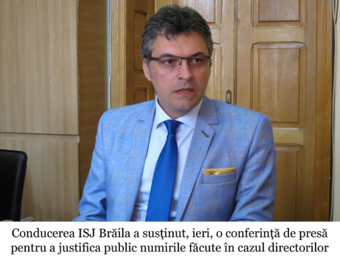 Inspectorul şcolar general Cătălin Canciu a susţinut, ieri, o conferinţă de presă, alături de cei doi adjuncţi, Dan Gheorghiţă şi Daniela Turcu, pentru a clarifica subiectul numirilor de directori, făcute la începutul lunii. Cu această ocazie, Canciu a lansat o provocare pentru partidele politice care s-au arătat deranjate de deciziile sale: să iasă la rampă şi să îşi prezinte directorii care sunt şi membri de partid, cu precizarea că nu ţine de datoria sa să chestioneze profesorii despre acest aspect. Mai mult, acesta a vorbit şi despre faptul că Dan Gheorghiţă este fratele copreşedintelui ALDE Brăila, Daniela Rădulescu, cu precizarea că acest aspect nu i-a influenţat decizia atunci când a venit vorba despre detaşarea directorilor. "În primul rând, ocuparea funcţiei de director se face prin concurs. Delegarea în interesul învăţământului, adică ceea ce se întâmplă astăzi, este un caz excepţional care a devenit o practică curentă. Trebuie să realizăm un lucru: ultimele concursuri de directori s-au desfăşurat în 2007. Acum câteva minute doamna ministru secretar de stat Monica Cristina Anisie ne-a asigurat în cadrul unei videoconferinţe că începând cu luna octombrie se vor desfăşura concursuri de directori la nivel naţional iar discuţiile pe marginea acestui subiect cu siguranţă se vor încheia. Revenind, detaşarea în interesul învăţământului se face atunci când un director cu concurs, fie şi-a dat demisia, fie a decedat, sau în alte situaţii, până la organizarea concursului şi nu mai târziu de sfârşitul anului şcolar. Delegarea se realizează la fiecare început de an şi nu durează mai mult de un an şcolar. Delegarea în interesul învăţământului s-a realizat în baza unui calendar naţional a mobilităţii personalului didactic. Anul acesta, delegarea s-a făcut în perioada 11 - 16 august. Nu are nicio legătură cu evaluarea anuală, care se realizează până la sfârşitul anului şcolar. Nu puteam realiza o evaluare a directorilor înainte de numirea pentru anul şcolar următor, pentru că mai aveam activităţi în care directorii erau cooptaţi: examenul de Bacalaureat, de titularizare şi aşa mai departe", a declarat Canciu. Acesta a precizat că deciziile în privinţa detaşărilor îi revin exclusiv inspectorului şcolar general, iar Consiliul de Administraţie validează sau nu propunerile sale. Canciu a afirmat că până la venirea sa, foştii inspectori şcolari aproape că îşi făceau listele cu directori în sediile de partid. "Este o realitate şi trebuie să o vedem exact aşa. De-a lungul timpului, inspectorii şcolari generali se duceau la partide şi împreună cu aceştia numeau directorii. Lucrul ăsta nu s-a mai întâmplat anul acesta. Am spus-o de nenumărate ori. Eu nu sunt membru de partid. Discuţia pe marginea numirii directorilor am început-o cred că prin luna mai - iunie, acolo unde şcolile nu funcţionează, unde sunt probleme. Bineînţeles că având întreaga responsabilitate pentru aceste numiri, am dorit să nu mergem aşa într-o inerţie şi să corectăm unde este cazul. Sunt inspector de 10 ani în Inspectoratul Şcolar. Aşa s-a întâmplat. Inspectorul şcolar general avea o listă pe care o tot completa pe parcursul verii. De ce să ne ascundem şi să ducem acest lucru în derizoriu? Nu este corect. Dar sperăm din toată inima ca din luna octombrie concursurile să aibă loc, să fie numiţi în urma unui concurs toţi directorii şi să încheiem această discuţie. Eu nu am avut discuţii cu partidele. Au încercat să vină, dar am încheiat discuţia în cel mai politicos mod. Nu! Şi cu asta basta. Au venit cam toate partidele să ştiţi", a mai completat Canciu. În ceea ce priveşte noile numiri, şeful ISJ a precizat că schimbările au venit acolo unde foştii directori nu mai erau apreciaţi de restul profesorilor, iar propunerile s-au făcut, de asemenea, prin consultarea cancelariilor şcolilor.