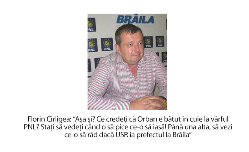 Mă, ce să zic, adevăru' e că cine sapă groapa altuia pică singur în ea, zice o vorbă din bătrâni! Alde Florin Cîrligea, care nu e de ieri de azi pe pământu' ăsta, adică are și el o vârstă, a cam uitat vorba asta și de ceva vreme cică a făcut cărțile prin PNL Brăila. Asta până după locale. Cum a făcut, cum a dres, Cătălin Boboc a pus mâna pe partid, iar Cîligea, care spera și el - pentru a câta oară? -, că va candida la generale și va câștiga de data asta un post de deputat, a luat-o din nou de cârlig! Asta nu-i nimic! Dar același Cîrligea a susținut alt candidat și a i-a tras-o cât a putut și cum a putut, inclusiv prin presa centrală, lui Alexandru Popa, zis și deputatul. Mai exact, PNL, fraților, are un singur parlamentar, iar deputatul vă dați seama ce importanță are pentru mulți! Vă imaginați ce rezistență îi trebuie lui Popa la limbile aspre și insistente a celor din jurul său. În fine, revenind la Cîrligea, cică azi, vineri, 15 ianuarie, orele 18.00, Biroul Permanent Județean îl va executa. Adică va fi dat afară din partid! Nasol! (Senatorul Melcilor)
