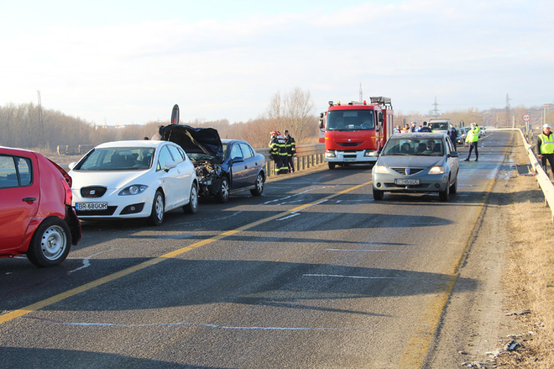 În urma cercetărilor efectuate, polițiștii au stabilit cum s-a produs evenimentul și ne-au transmis noi informații. Victimele au fost în număr de trei. “În această dimineață (n.r. - luni), un bărbat în vârstă de 31 de ani, din Brăila, în timp ce conducea un vehicul pe DN 22B, pe sensul de mers Brăila-Galați, ar fi lovit autoturismul aflat în fața sa, ce se afla oprit la culoarea roșu a semaforului electric. În urma evenimentului, au fost implicate cinci autoturisme aflate în coloană, rezultând vătămarea corporală a unui bărbat, în vârstă de 40 de ani și a două tinere în vârstă de 23 de ani, respectiv 25 de ani, toți din Brăila. Persoanele rănite au fost transportate la spital pentru acordarea de îngrijiri medicale.