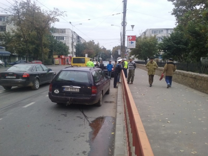 O tamponare în care au fost implicate trei autoturisme a avut loc în această dimineață pe Calea Galați, între Podul Brăilița și intersecția Plantelor. Se pare că șoferul unui Ford, care circula dinspre cartierul Vidin spre centru, nu a călcat la timp pedala de frână și a intrat într-un Logan, care aștepta la semafor. Din inerție, Loganul a intrat în autoturismul din fața sa.
