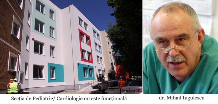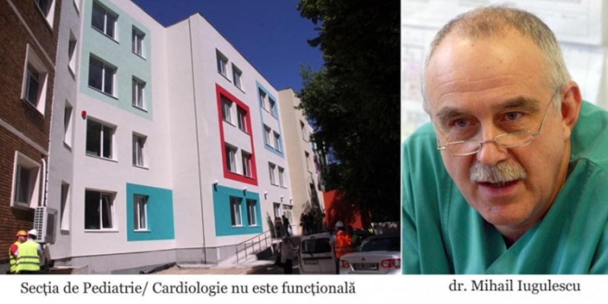 Secţia de Pediatrie - Cardiologie, aflată în fază avansată, având chiar şi angiograful de 900.000 euro în dotare, ar fi trebuit predată chiar ieri, însă, aşa cum era de aşteptat, aici n-au fost finalizate lucrările de străpungere a zidurilor pe trei paliere, spre Morga, Ambulator şi Bloc Operator, deşi acestea erau prinse în contractul/ proiectul iniţial. "Din păcate, secţia este nefuncţională, e un alt cui al lui Pepelea", ne-a declarat dr. Mihail Iugulescu, directorul Spitalului Judeţean de Urgenţă.