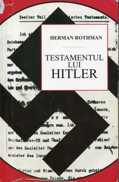 Testamentul politic şi cel personal al lui Hitler nu ocupă mai mult de 10 pagini din carte, însă profunzimea acestora este uluitoare: "Mai presus de orice, ordon guvernului naţiunii şi poporului să susţină legile rasiale până la ultimele consecinţe şi să opună o rezistenţă înverşunată celor care înveninează toate naţiunile, comunitatea evreiască internaţională. Berlin, 29 aprilie 1945, ora 4:00, A.Hitler"