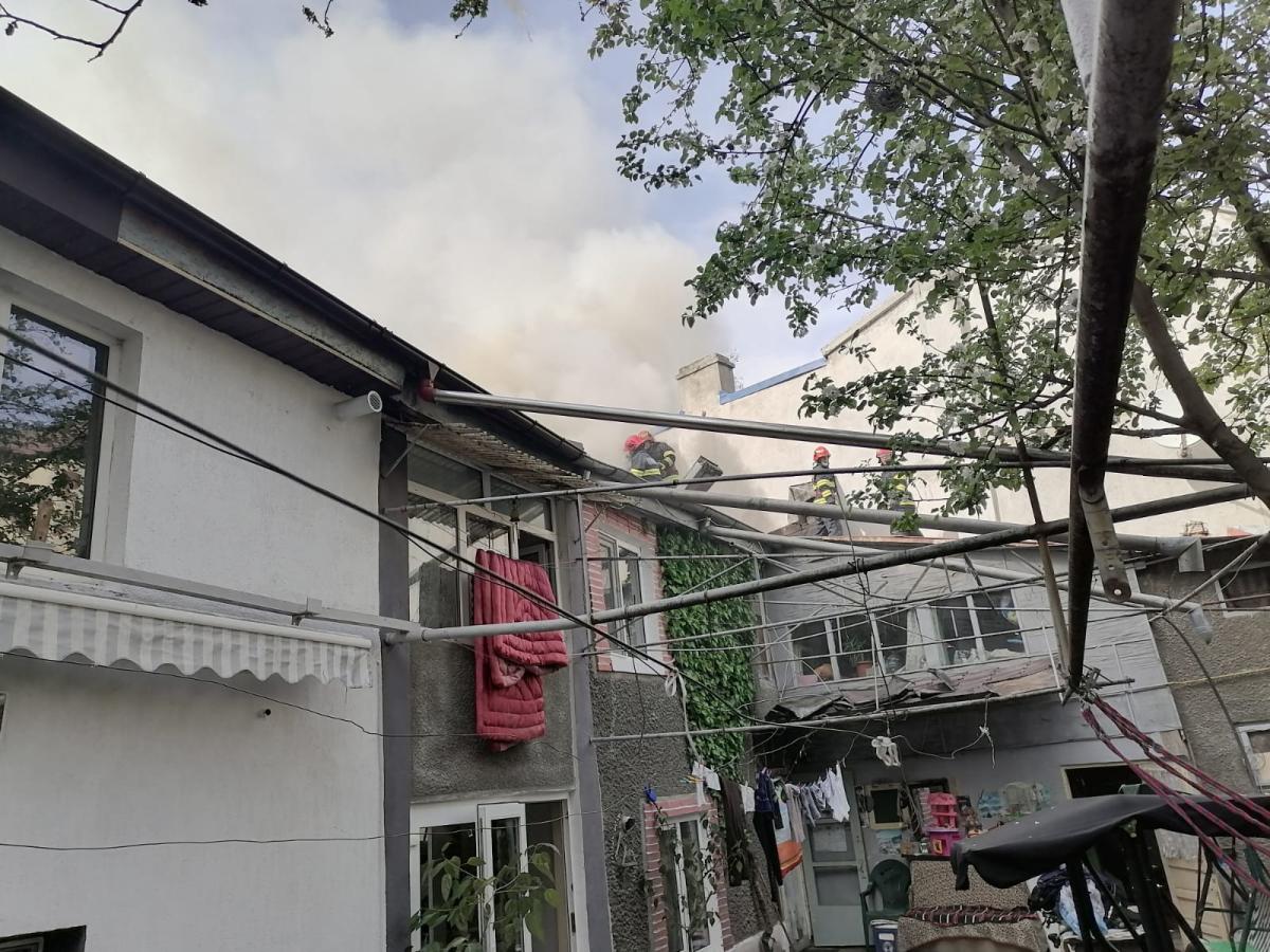 Pompierii brăileni au intervenit în după-amiaza zilei de astăzi, sâmbătă, 1 mai, cu trei autospeciale de stingere, pentru lichidarea unui incendiu izbucnit la etajul 1 al unei clădiri de pe strada Golești. Din primele informații reiese că focul a pornit de la un aragaz. A fost afectat acoperișul imobilului, pe o suprafață de circa 300 mp, precum și încăperile de la etaj, care au avut de suferit atât din cauza focului și fumului, cât și a apei folosite de pompieri în cadrul intervenției. În imobilul respectiv locuiesc trei familii și toate trei s-au ales cu pagube materiale importante. Imagini de la fața locului ne-au fost puse la dispoziție de Inspectoratul pentru Situații de Urgență.