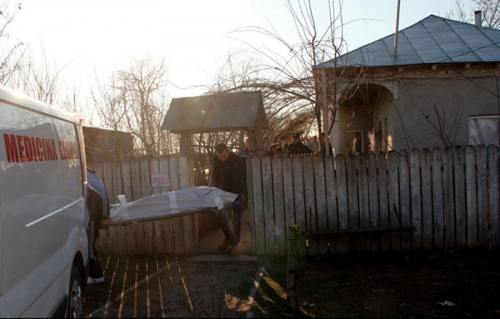 Ieri, după efectuarea investigaţiilor la domiciliul familiei Datcu, trupurile celor doi decedaţi au fost urcate în maşina de la Medicină Legală.
