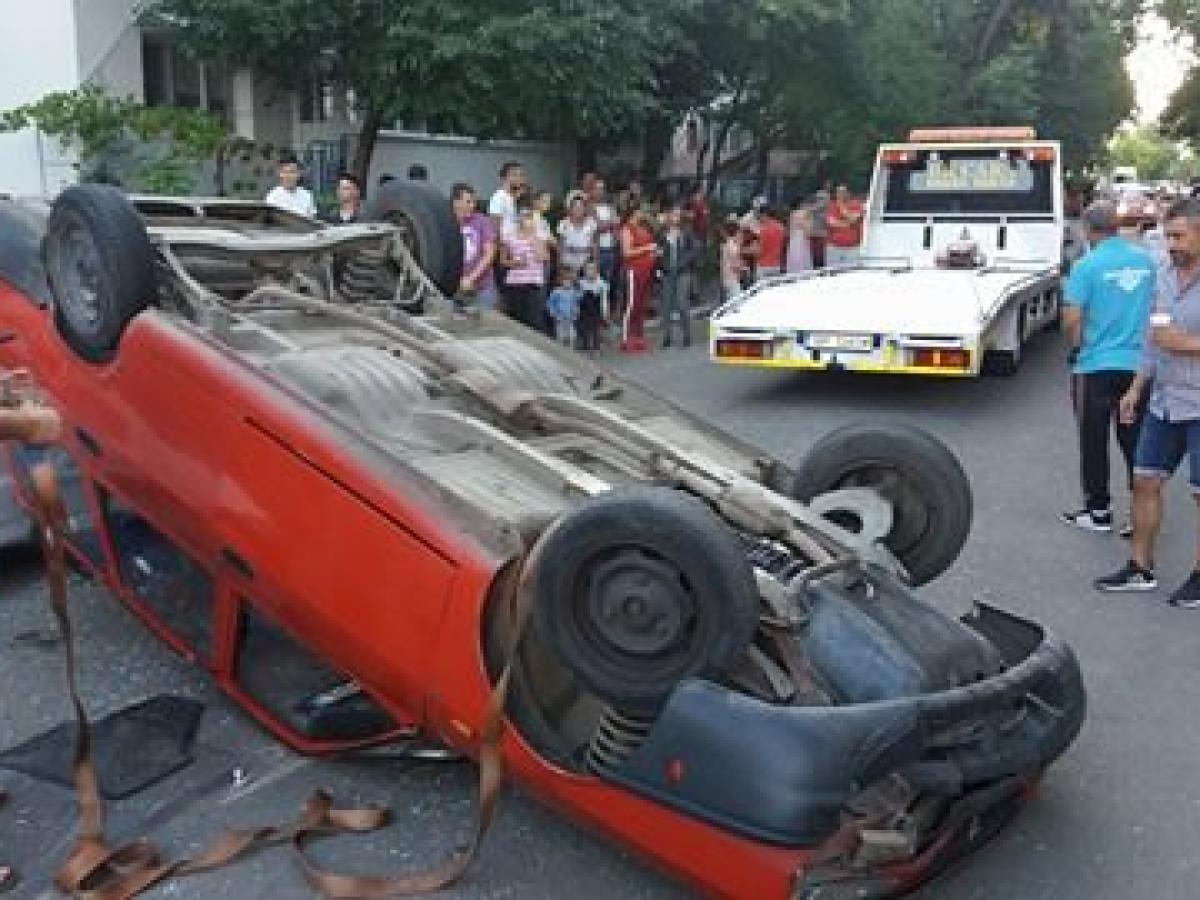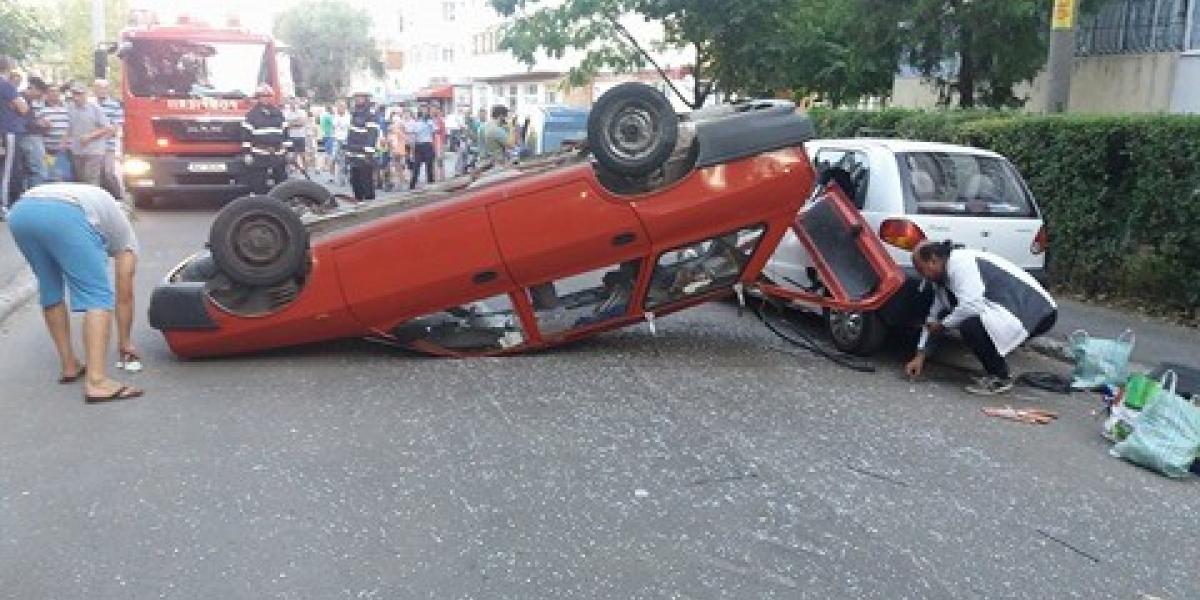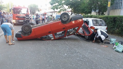 * un șofer băut, aflat la volanul unei Dacii Solenza, nu a acordat prioritate unei Dacii Break, pe care a răsturnat-o și a aruncat-o peste alte două mașini parcate