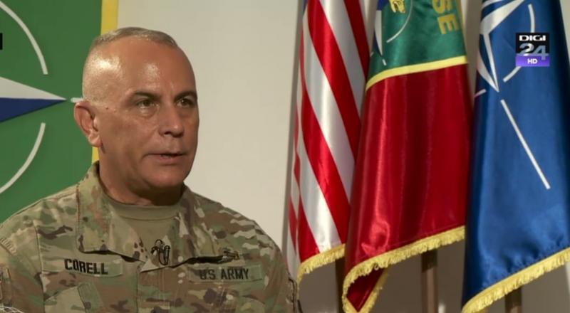 Gral. Benjamin Corell: Sunt ofiţer al armatei SUA, dar sunt şi membru NATO venit aici cu o misiune în cadrul Comandamentului NATO. Dacă mă uit la motivaţia mea pentru a fi aici, când mă uit la alţi membri ai acestui comandament, apropos, avem reprezentanţi cam din jumătate din cei 29 membri NATO în acest comandament care este în creştere. Ştiu de asemenea că sunt antrenamente bilaterale, între SUA şi alţi parteneri, alţi membri ai Alianţei în România, care sunt centrate pe construirea de interoperativitate între formaţiunile militare şi de asemenea pe construirea de infrastructură şi capacităţi pentru România. O parte dintre îmbunătăţirile de infrastructură pe care le văd în România de când sunt aici, la baza Mihail Kogălniceanu, la poligonul Cincu, la Babagad, sunt investiţii făcute de cetăţenii şi conducerea României şi de cetăţenii şi autorităţile din SUA şi alte state care au contribuit de asemenea. Acestea vor întări Alianţa, vor creşte capacităţile armatei române şi a forţelor NATO care vin aici pentru antrenament. În perioada cât am stat aici au avut loc mai multe evenimente NATO care au privit direct România, mai ales în ultimul an.