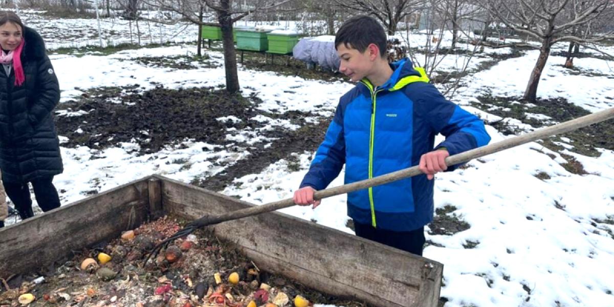 Pentru a nu risipi materialele organice din curtea școlii, care pot deveni fertilizanți importanți pentru plantele noastre, este bine să amenajăm o ladă de compost. În sezonul rece putem aduna materialele necesare și confecționa o ladă suficient de mare, care să fie pregătită pentru sezonul care urmează și în care putem depozita materialele adunate cu ocazia curățeniei de primăvară.