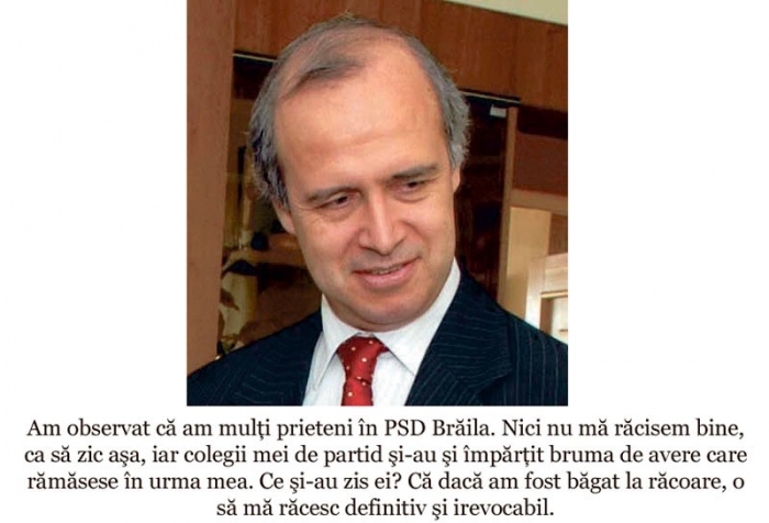 Timp de 10 zile, cât primarul Aurel Simionescu a stat în agonie, prietenii acestuia s-au bătut pentru a-l deposeda de bunurile (materiale sau nu) pe care acesta le avea pe inventar. Au fost 10 zile în care s-a văzut foamea de putere a celor care nu se reprezintă decât pe ei înşişi în politică, interesul cetăţenilor fiind doar o expresie golită de conţinut. Doiniţa Ciocan, care timp de 4 ani nu a fost decât un soi de piesă de mobilier în Primăria Brăila, şi-a descoperit brusc aptitudinile de mare conducător de urbe. La fel, senatorul Ion Rotaru, care înainte de Revelion le număra ciobanilor câinii de la stână, a simţit mirosul de ciolan la partid, căci „defunctul" Aurel Simionescu era preşedinte al organizaţiei judeţene (fie el şi interimar). Vi-i imaginaţi pe Doiniţa Ciocan şi Ion Rotaru frecându-şi mâinile de bucurie că, în sfârşit, a venit şi vremea lor. Liberalii au realizat că pot prinde un loc la masă, aşa că s-au retras, nu înainte de a-i înjura pe pesedişti pentru că nu se mai satură de putere.