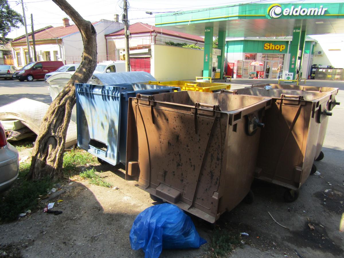 În prezent, totul în jur este sufocat de tot felul de arbuști și bălării, unde domină oțetarii cât toate zile. Iar ca să ajungi spre bloc abia te poți strecura pe o potecă de-o palmă și apoi îți trebuie o macetă sau o drujbă, cu grija maximă să nu cazi în gropile betonate. Locatarii și administrația blocului au cerut ajutorul autorităților locale, dar deocamdată fără efect. “Ne-am adresat, în urmă cu peste un an de zile, Primăriei, însă nu s-a rezolvat nimic. Și, pe lângă acest dezastru din curtea interioară a blocului, mai avem o problemă pe Ștefan cel Mare, vizavi de benzinărie, unde sunt șapte containere, nespălate și nedezinfectate, care nu se descarcă la timp, iar sub ferestrele locatarilor mirosul este insuportabil”, ne-a mai spus administratorul. La fața locului se poate observa că aceste containere din material plastic, fără să li se respecte destinația, sunt mereu cu capacele ridicate, fiind înfundate inclusiv cu scaune și fotolii dezmembrate. Apar inclusiv saltele și paturi rupte aruncate lângă aceste pubele.
