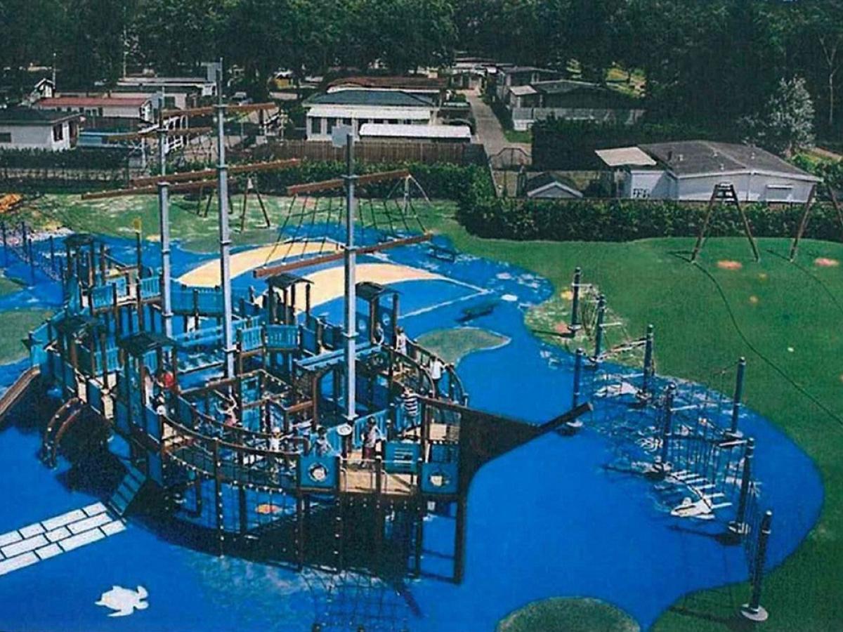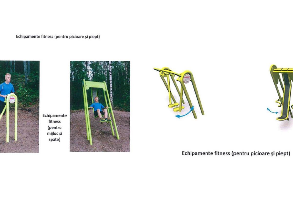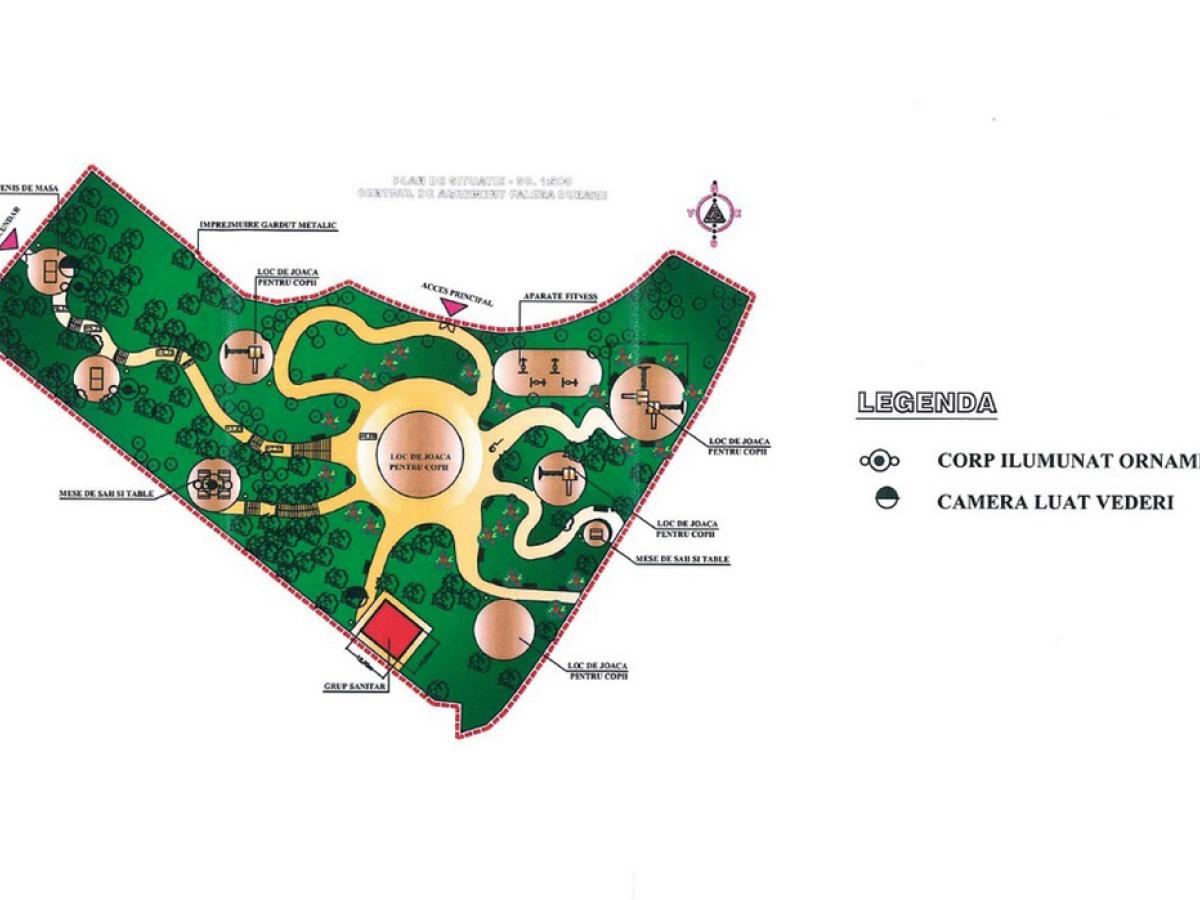 Concret, complexul va avea alei, gărduleţe colorate (înalte de 0,50m), un grup sanitar modern, covoare din suprafaţă de cauciuc tartan pentru spaţiile de joacă destinate copiilor, gazon, flori. De asemenea, echipamentul complex tip corabie va conţine 3 tobogane, 6 turnuri, 26 de panouri cu jocuri, 5 punţi şi 10 panouri pentru căţărat şi scări. Cele două centre mai mici sub forma unui vapor vor fi dotate cu un tobogan, un turn, 8 panouri cu jocuri, o punte, un panou pentru căţărat şi scară. La acestea se adaugă 3 balansoare pe arc sub formă de figurină cu tematică marină pentru o persoană şi încă unul pentru două persoane. Vor fi patru echipamente fitness (pentru spate, piept, picioare şi mijloc), două spaţii pentru tenis de masă şi cinci cu mese pentru şah şi table, dotate cu băncuţe. Tot în zonă vor fi montate 25 de bănci (mobilier urban) şi 10 coşuri de gunoi.