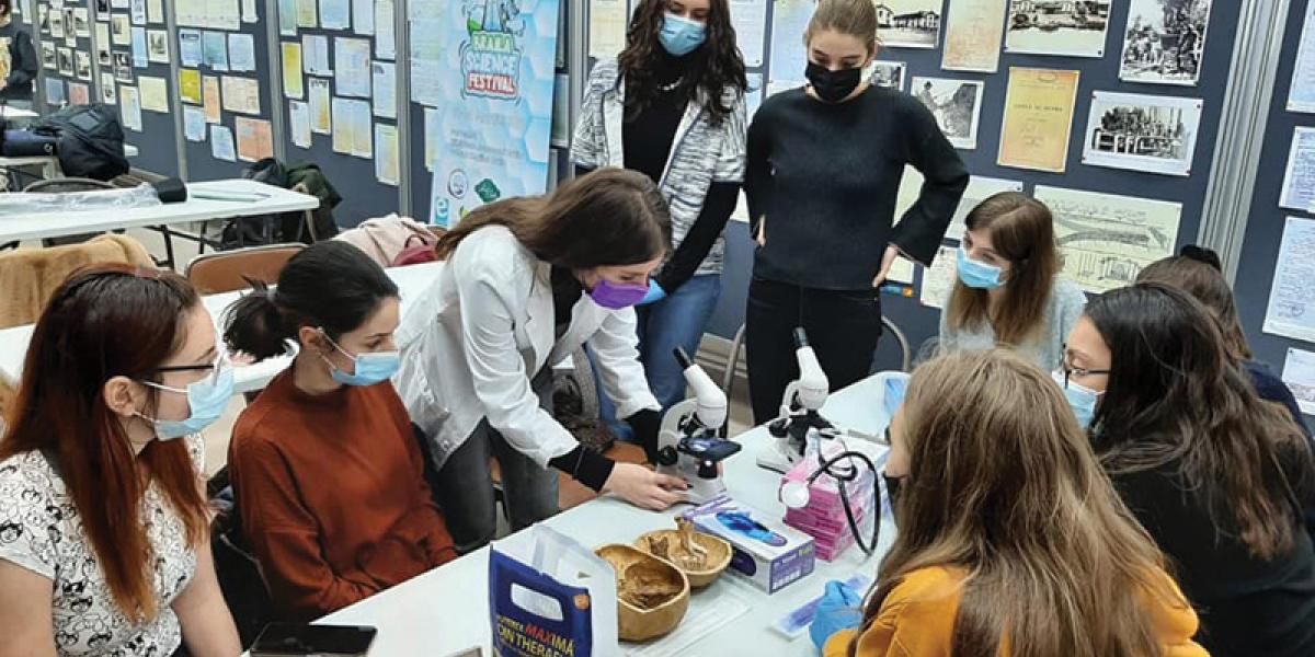 “Proiectul este practic o continuare a Festivalului de Științe din Brăila din 2019, adaptat la situația pandemică. În cadrul Bibliotecii Județene am organizat pentru liceeni ateliere de spectrofotometrie, de microscopie optică, de disecții și de abilități medicale de bază. Au fost aproximativ 50 de participanți la atelierele de medicină și 20 la cele de chimie. În cadrul atelierelor de medicină, elevii au învățat să afle concentrația necunoscută a unei soluții folosind un grafic generat pe baza intensității luminii care trece prin soluții de concentrație cunoscută. Au învățat să examineze frotiuri din propriul sânge, să măsoare tensiunea arterială și să asculte zgomotele cardiace și pulmonare. De asemenea, au învățat să exploreze, disecând, organe de porc (inimă, rinichi, ochi), să folosească un microscop, să recolteze și să însămânțeze bacterii pe un mediu de cultură. În plus, au învățat să realizeze noduri chirurgicale și trei tipuri de suturi. La atelierele de chimie, copiii au realizat mai multe experimente, precum obținerea de precipitate folosind săruri de bariu și cupru, acțiunea indicatorilor de pH, reacția dintre zinc și acid clorhidric și au observat alte experimente, cum ar fi electroliza iodurii de potasiu”, ne-a declarat Cezar Barbu, inițiatorul proiectului.