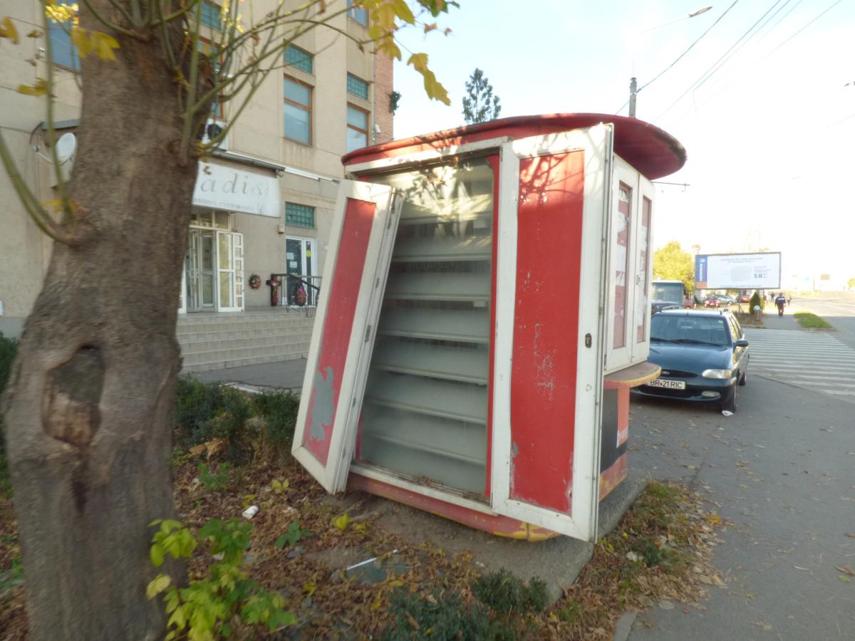 În urmă cu ceva timp, semnalam situaţia chioşcurilor abandonate şi insalubre din Brăila, conducerea Primăriei garantând la vremea respectivă că „se va verifica şi identifica fiecare chioşc în parte , urmând ca deţinătorii să le menţină sau folosească în mod civilizat”. Din păcate însă, situaţia nu s-a schimbat cu nimic, aducându-se în derizoriu formula “rămâne cum am stabilit”. Aşadar, lângă fostul sediu al Palatului Telefoanelor de pe bdul. Independenţei, colţ cu Calea Călăraşilor, un chioşc aproape strivit de un nuc netoaletat este în continuare cu geamurile sparte, plin de mizerie, adăpost pentru câinii maidanezii din zonă. Acesta a fost, când şi când, oblojit cu diverse panouri, distruse însă la scurt timp. La fel se întâmplă şi lângă fosta Centrală Penta 4 de telefonie de la Pod Brăiliţa, unde un chioşc de difuzare a presei este sistematic devastat. Iar exemplele pot continua.