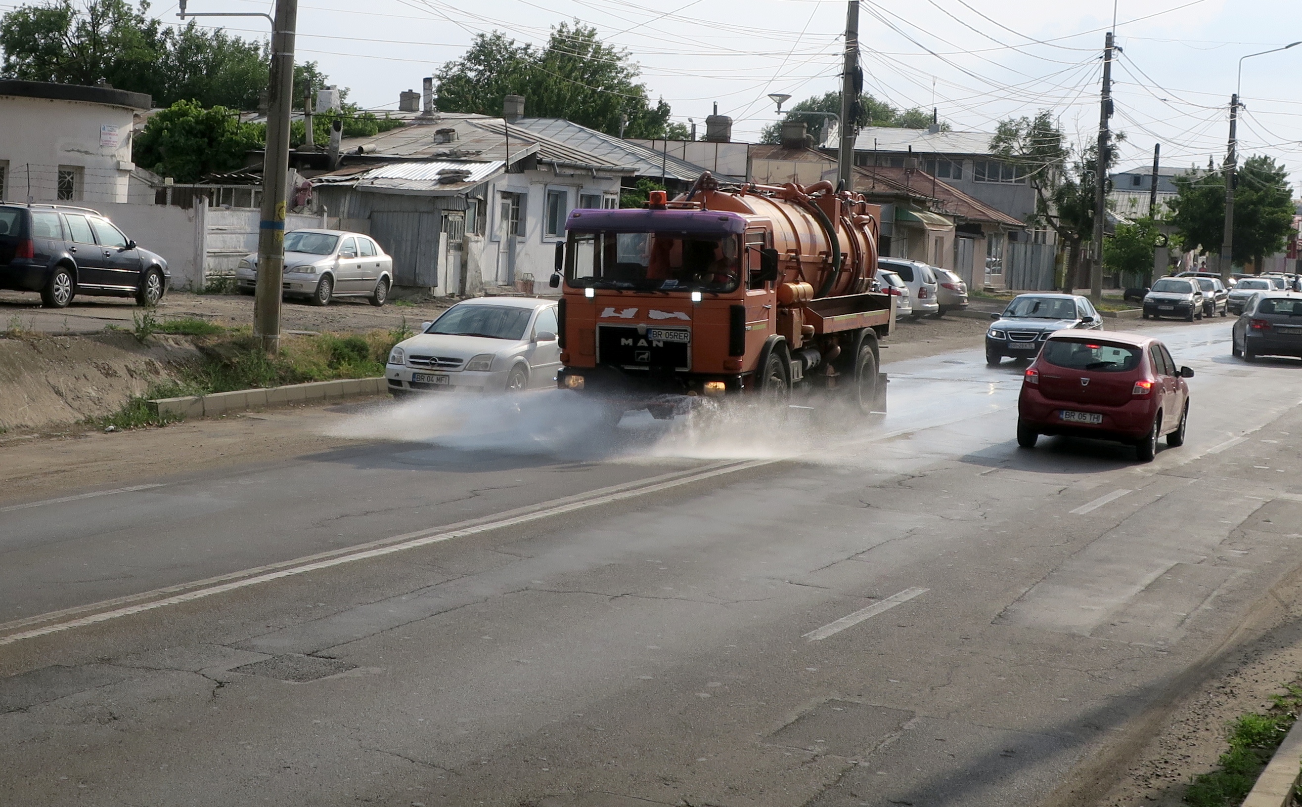 Astfel, în lupta cu efectele caniculei sunt angrenate nu mai puţin de cinci utilaje aparţinând SC ECO SA, RER Ecologic Service SRL şi SC Brai-Cata SRL, care împrăştie, zilnic, tone de apă pe străzile pârjolite de arşiţă. Este vorba de autospeciala BR-05-PPK, cu o capacitate de 13 metri cubi de apă şi cu o lăţime a stropirii de 6 metri, şi de "sora geamănă", autospeciala BR-05-BRT, cu o capacitate de 13 mc şi o lăţime a stropirii de 6 metri, ambele aparţinând SC ECO SA. La acestea, se adaugă autospeciala BR-05-RER (de la RER Ecologic Service SRL), cu o capcitate de 10 mc de apă şi cu o lăţime a stropirii de 4 metri, precum şi autospecialele SC Brai-Cata SRL: BR-04-TWM şi BR-79-WAL, ambele cu o capacitate de 10 mc de apă şi cu o lăţime a stropirii de 3 metri.