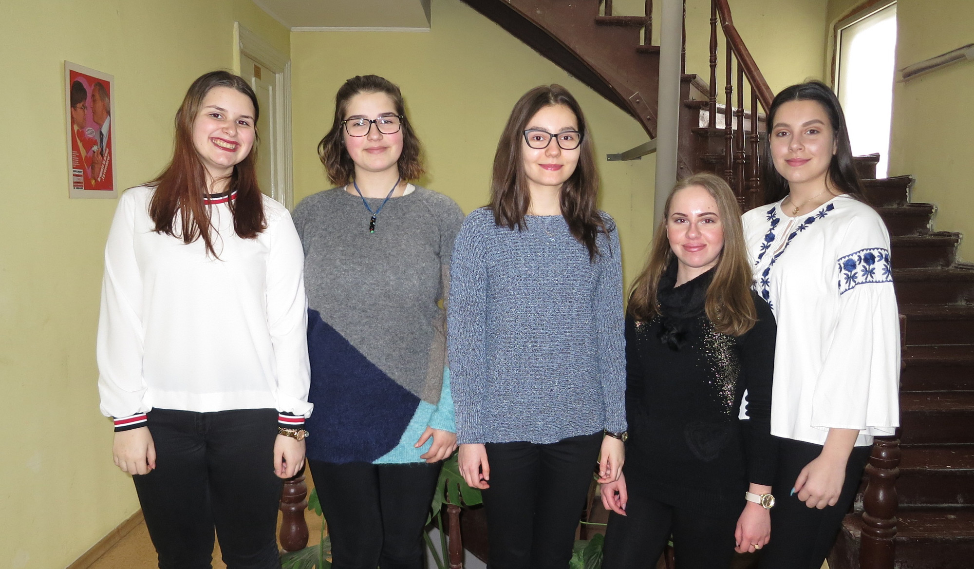 Cinci fete frumoase şi deştepte, trei de la “Bălcescu” şi două de la “Murgoci”, vor reprezenta Brăila la Olimpiada Naţională de Limba Germană Modernă, competiţie ce se va desfăşura la Craiova, în perioada 23-29 martie. Toate sunt pasionate de limbile străine şi de... teatru. Iar acest lucru nu este întâmplător, pentru că la faza naţională, pe lângă proba scrisă, concurenţii participă la o probă de proiect, pe echipe, unde trebuie să pună în scenă o piesă de teatru pe baza unei cărţi în limba germană.