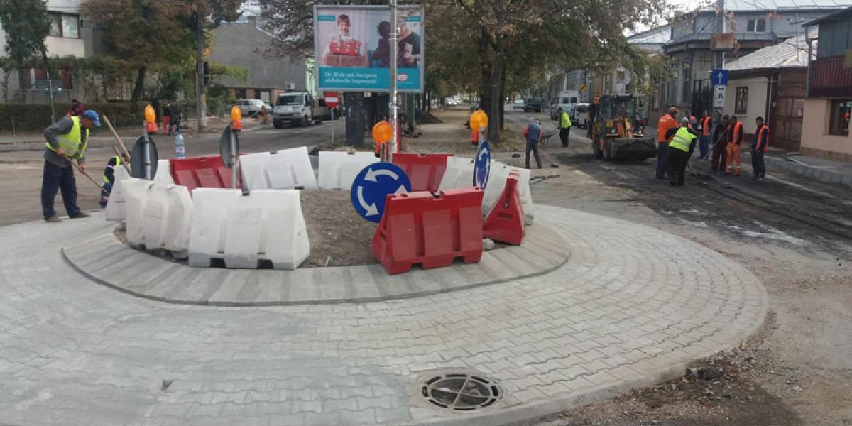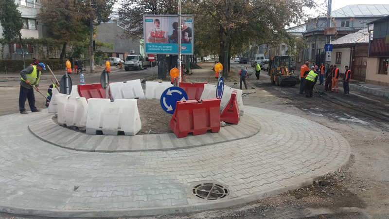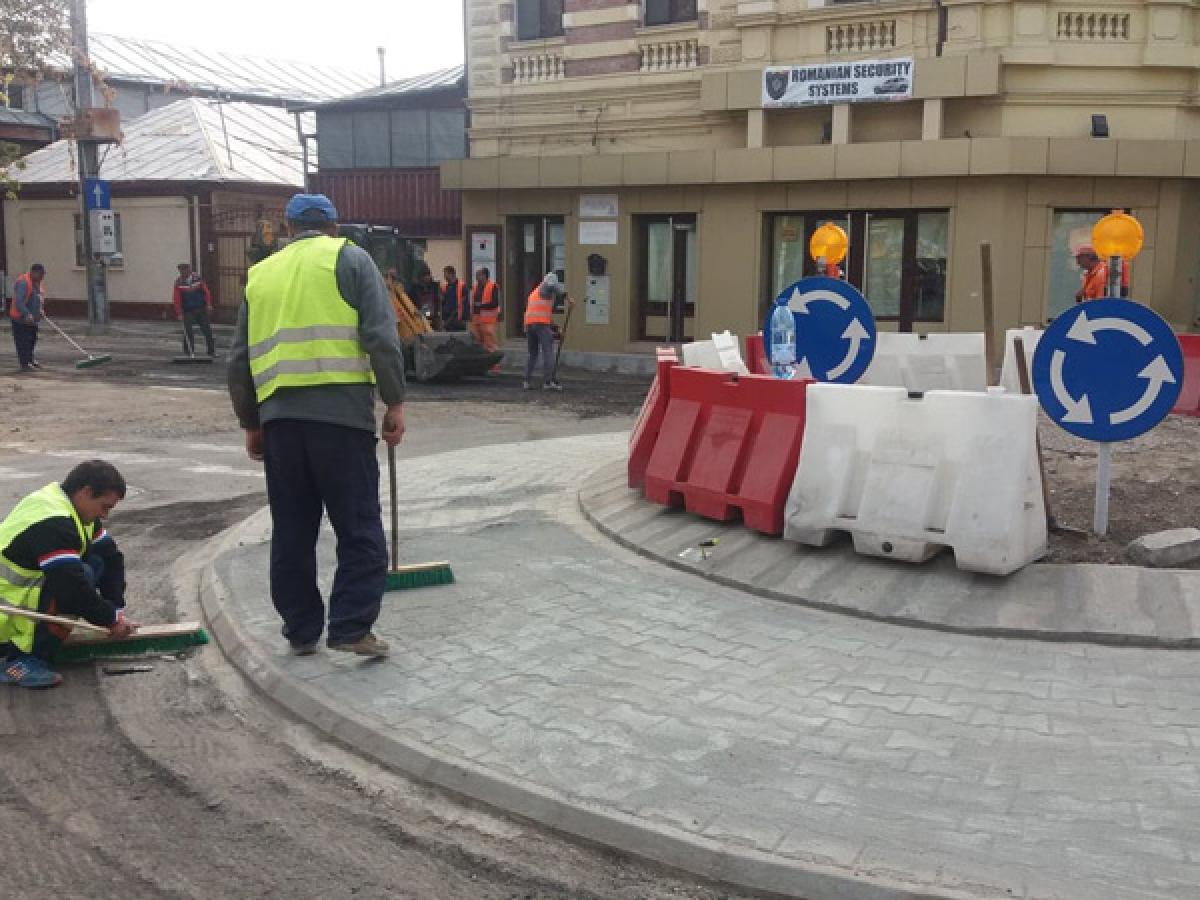 • măsura se va aplica, luni, 22 octombrie, dacă starea vremii va permite turnarea stratului de uzură în intersecţie şi la racordurile laterale • circulaţia s-a desfăşurat cu restricţii începând de vineri, 19 octombrie, când s-au început lucrările la stratul de rezistenţă al asfaltului, care s-a turnat alternativ, pe câte un sens de mers • în ceea ce priveşte calitatea execuţiei insulei centrale a giratoriului, Primăria încă mai are observaţii şi avertizează constructorul că dacă la recepţia finală nu vor fi toate lucrurile în regulă îl va pune să remedieze deficienţele constatate