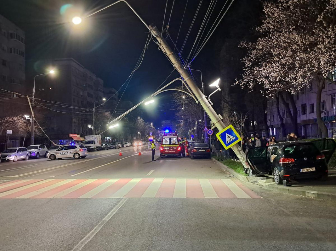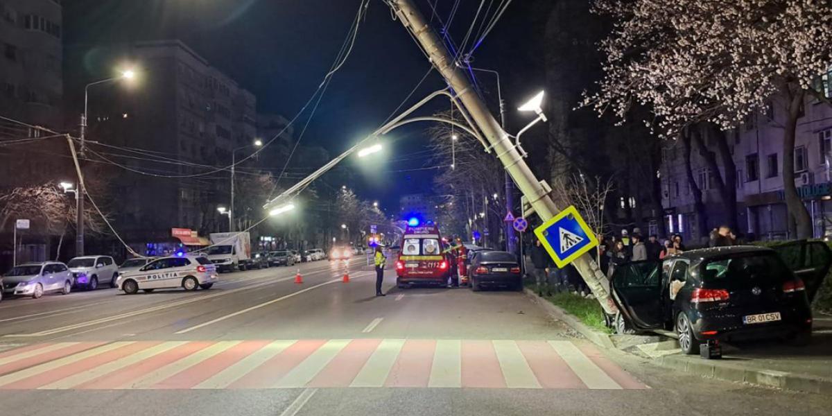 Reamintim că, în seara zilei de 23 martie a.c., în jurul orei 20.15, autoturismul condus de un tânăr în vârstă de 19 ani a ieșit de pe partea carosabilă și s-a izbit puternic de un stâlp de electricitate, pe B-dul. Dorobanților, în zona intersecției cu Strada Tineretului. După impact, stâlpul de beton s-a rupt de la bază și s-a înclinat, fiind în pericol să se prăbușească în orice moment pe carosabil. Din acest motiv, traficul rutier a fost oprit temporar, pe ambele sensuri de mers, de Poliția Rutieră. În urma evenimentului rutier au rezultat doar pagube materiale. Șoferul a fost testat cu aparatul etilotest, rezultatul fiind zero. Reprezentanții Poliției au transmis că acesta a fost sancționat contravențional cu amendă în valoare de 990 de lei, confrom OUG nr. 195/2002.