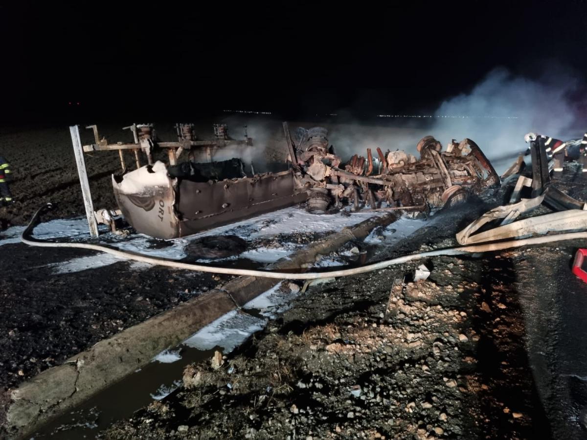 ȘTIRE ACTUALIZATĂ Din păcate, șoferul, un bărbat în vârstă de 50 de ani, din județul Constanța, nu a reușit să iasă din cabină și a murit carbonizat. Cisterna transporta 40 tone de motorină.