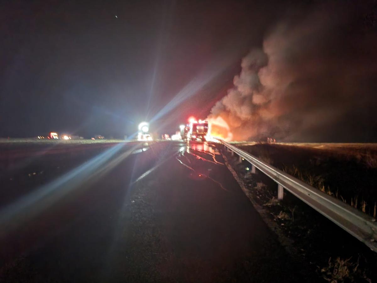Intervin trei autospeciale de stingere din cadrul ISU Brăila și o autospecială de stingere din cadrul ISU Ialomita. BR - intre Bertestii de Sus si Gura Ialomitei - apel 112 - incendiu produs la o cisternă răsturnată pe partea carosabilă. Apelantul vede flacără. Traficul este blocat. FI: 3 ASAS, 1 SAJ, din cadrul ISU IL: 1 ASAS.