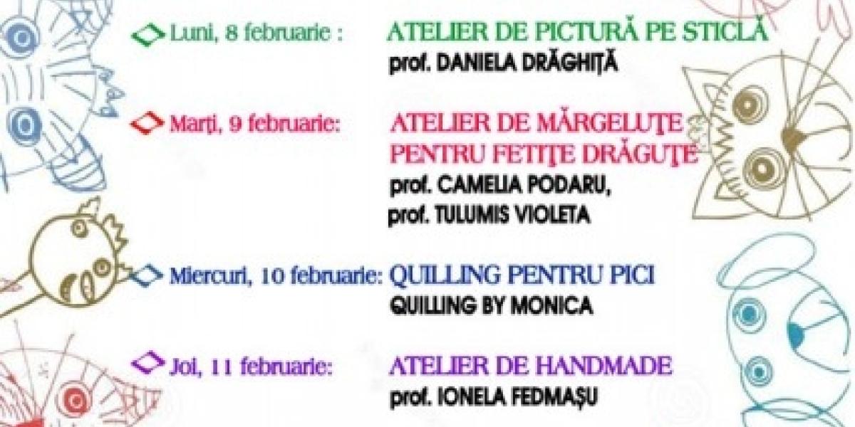 Marţi, 9 februarie, se va desfăşura Atelierul de mărgeluţe pentru fetiţe drăguţe, activitate îndrumată de prof. Camelia Podaru şi Violeta Tulumis, la care sunt disponibile 30 de locuri.