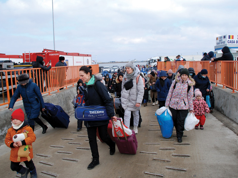 Dacă grijile și spaimele care le apasă pe suflet s-ar putea cântări cum se cântărește plumbul înainte de a fi prelucrat în gloanțe, refugiații ucraineni n-ar mai putea trece Dunărea pe la Isaccea, pentru că bacurile s-ar scufunda sub greutatea lor. Sute de persoane ajung în vamă o dată la câteva ore, în funcție de cât de repede se umple bacul pe malul celălalt. Doar câțiva trec cu mașinile personale, cei mai mulți fiind pe jos, cu doar câteva bagaje de mână în care au înghesuit niște lucruri luate la repezeală. Marea majoritate sunt femei tinere forțate să-și lase în urmă casele și traiul liniștit de până mai ieri, pentru a-și feri copiii de bombele unui război neașteptat și de neînțeles. În orașele și satele de unde au fugit, moartea bântuie acum liberă pe străzi, putând lovi oricând și pe oricine. De aceea, gândul la cei rămași acasă - fie că sunt soții chemați să lupte cu invadatorii, fie că sunt părinții ce nu au vrut să-și părăsească agoniseala de o viață - nu are cum să nu le sfâșie inima celor care, după un drum plin de primejdii și istovitor, se văd în sfârșit la adăpost, pe teritoriul unui stat unde încă este pace.